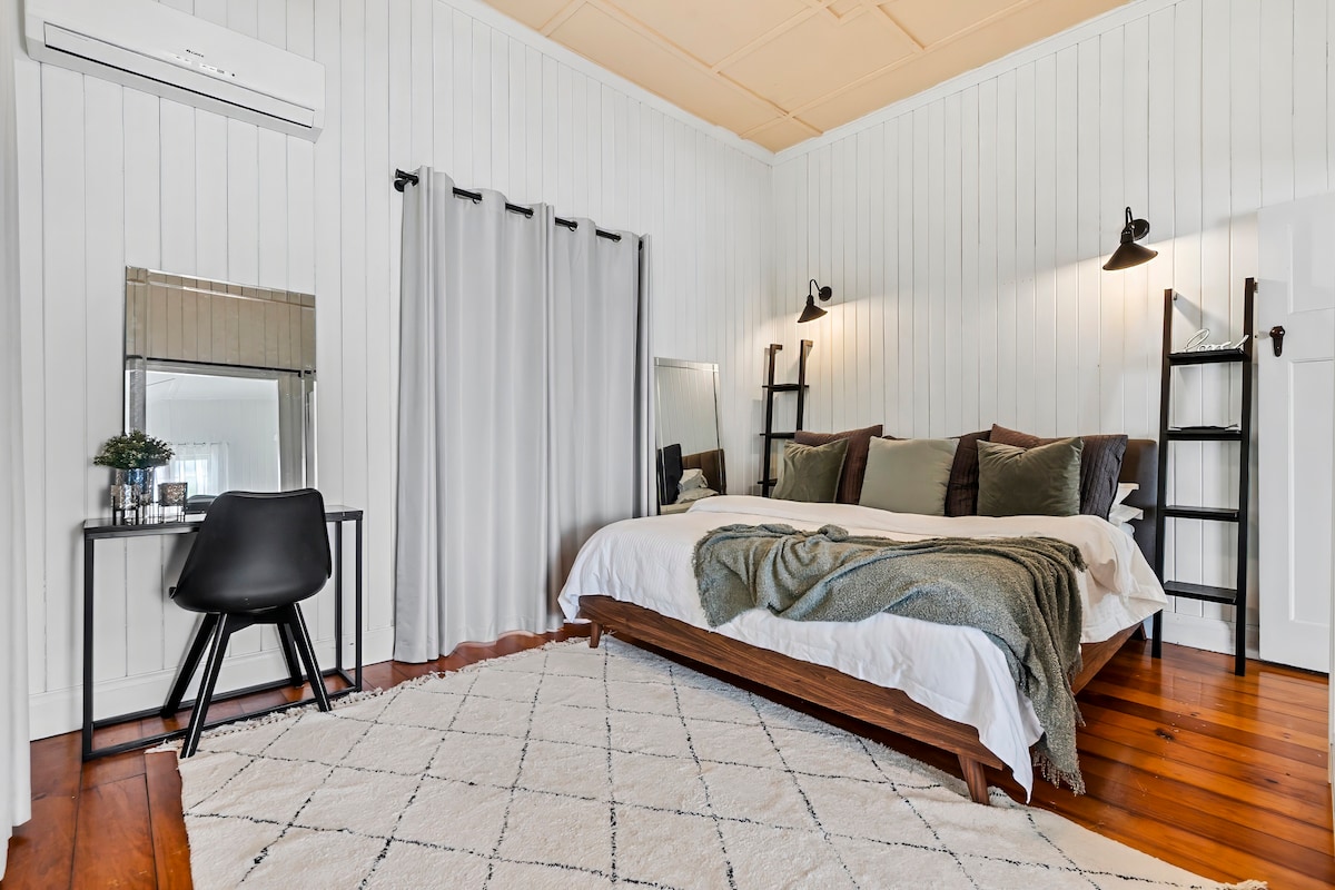 Our Family holiday home is a mix of retro and modern interior. Our house sits directly opposite the beautiful Shellys Beach, Emu Park. Our beach house can sleep up to 8 people, consisting of 4 bedrooms. . Fully air conditioned, large covered front deck with comfortable seating , furnishings are modern, homely and clean. Relaxed vibe will await you on arrival 🌊 We are located down a quiet residential street only a few minutes away from local supermarket, Baker, coffee shop, newsagent. .