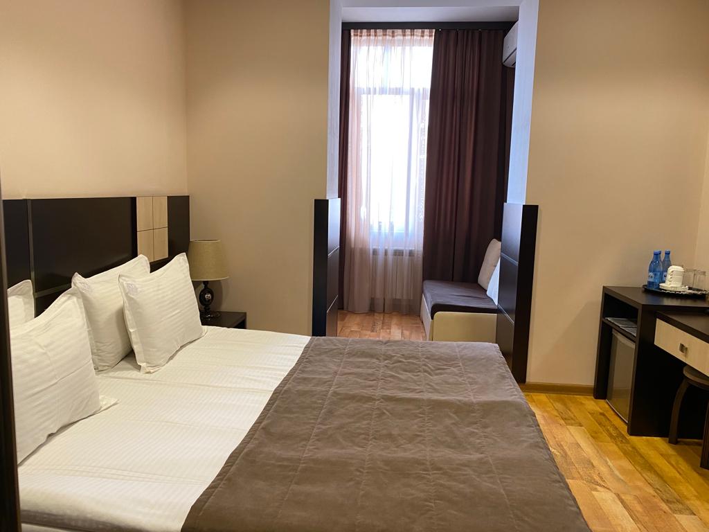 Welcome to the Opera Room at Cascade Heritage Inn – a cozy and elegant space in the heart of Yerevan. Perfect for solo travelers or couples, this room features a comfortable single beds, private bathroom, and charming Armenian stone details. Located just steps from the Cascade Complex, restaurants, and cultural sites. Enjoy peace, comfort, and a truly local experience.