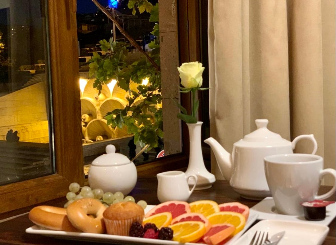 The Cascade Room at Cascade Heritage Inn offers a bright and spacious retreat with stunning views of the iconic Cascade Complex. Featuring a comfortable double bed, a private bathroom, and authentic Armenian tuff stone walls, this room blends local heritage with modern comfort. Enjoy peaceful mornings, natural light, and easy access to Yerevan’s cultural heart. Perfect for travelers seeking comfort and inspiration.