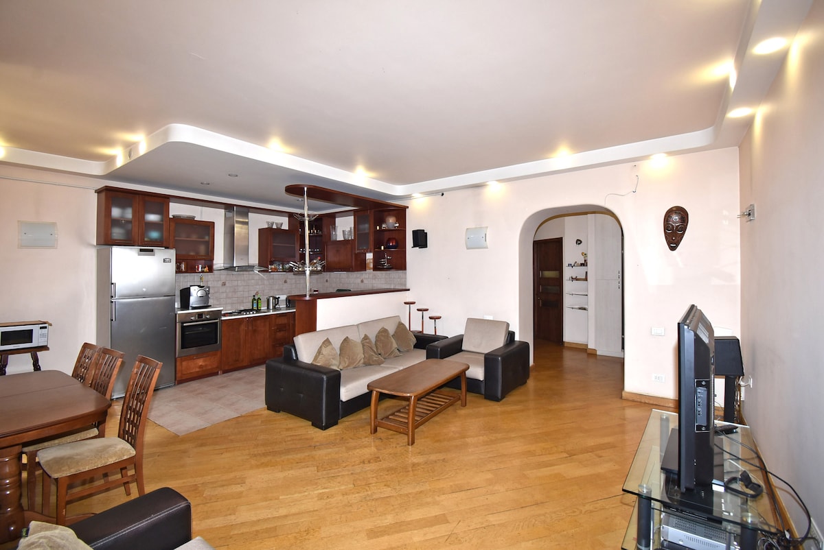 Dear and Respectful Traveler!! I offer you my comfortable apartment in the heart of Yerevan, from where you will easily go to the main Republic Square, famous Opera theatre, the wonderful Cascade monument and lot's of other famous sightseeing places in the center of Yerevan. Inside of home you will find air-condition, two bathrooms, free highspeed Wi-Fi, cabled TV with lots of channels, free and paid underground parking places for a car and lots of other things for your comfortable rest.