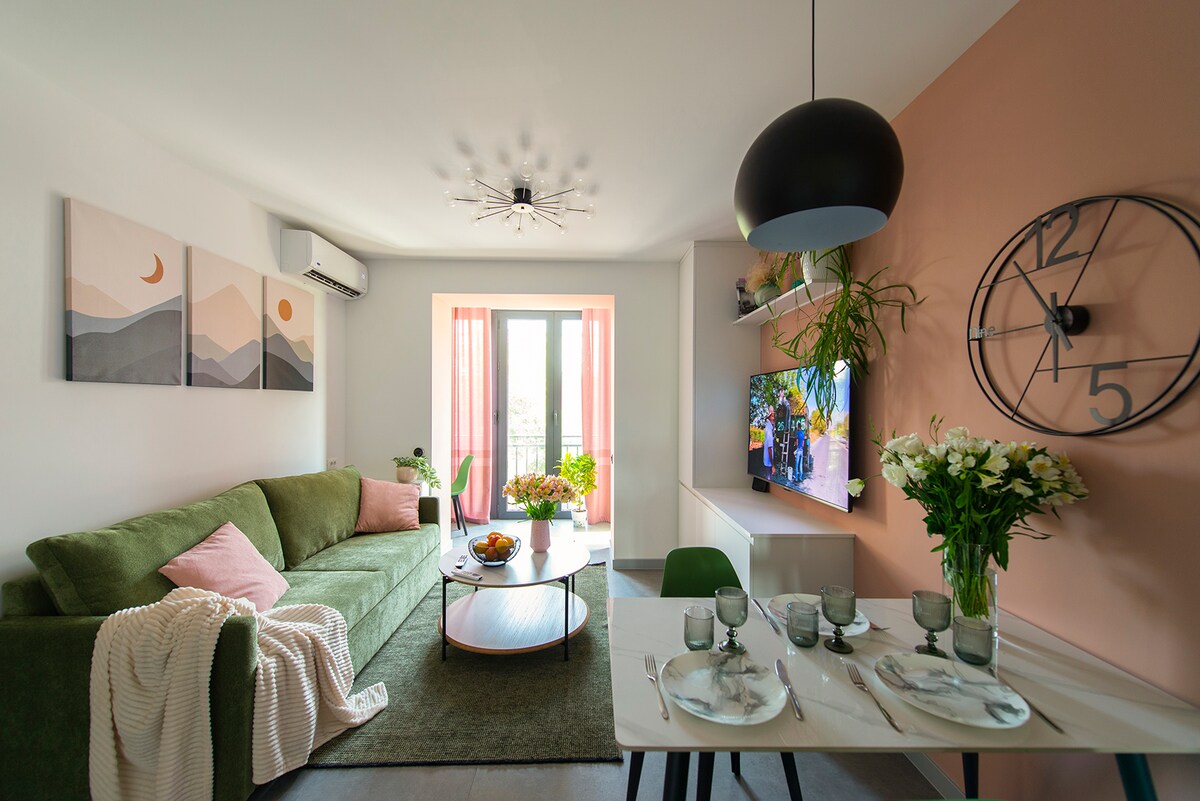 ☆ Welcome to "Harmony" by Hotelise: Where Colorful Warmth Meets Premium Comfort. ✓ 24/7 Self Check-in ✓ 1/5 floor ✓ AC ✓ Balcony ✓ 45sqm ✓ Large Smart TV & IPTV ✓ Premium Bathroom /w Premium Fittings ✓ Premium Furnishings ✓ High-speed 200 Mbit WiFi ✓ Washer and Dryer ✓ Fully-equipped kitchen /w Dishwasher ✓ Luxury hotel toiletries ✓ Fresh linens & plush towels ☆Apartment Next Door "Melody" available for large groups ♥ At hotelise we are creating memories one stay at a time!