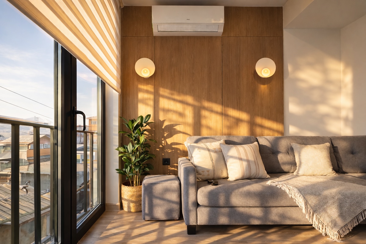 Enjoy a balcony with a stunning 180° view of Yerevan’s center and Mount Ararat. Located in a new building with elevator in an upscale neighborhood, just steps from the Cascade complex. The bedroom offers 2 comfy single beds with orthopedic toppers, plus a spacious sofa-bed in the living room. Amenities include central heating, instant hot water, A/C, smart TV, fast unlimited WiFi, hair dryer, iron & board. Owner-managed, not a broker. Photos and description 100% accurate.