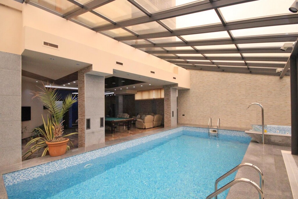 MS555/Nor Nork district, 5 B/D LUXURY & GRANDE 3floors VILLA Privet POOL & YARD ===== (3 floors, 546sq/m residential, 5 bedrooms) ===== • Hot & Cold water 24/7, • Central Cooling system, • Parking for 4 cars, Cams. 1-st floor -Leaving room, kitchen, 1,5 bathroom, indoor POOL, Sauna, GYM, cloakroom, laundry, cellar, boiler house. 2-nd floor -1 bedroom, 1 bathroom, open balcony, hall, 0.5 bathroom, foyer, elevator. 3-nd floor-4 bedrooms with it's bathrooms, with open balconies and 3 closets.