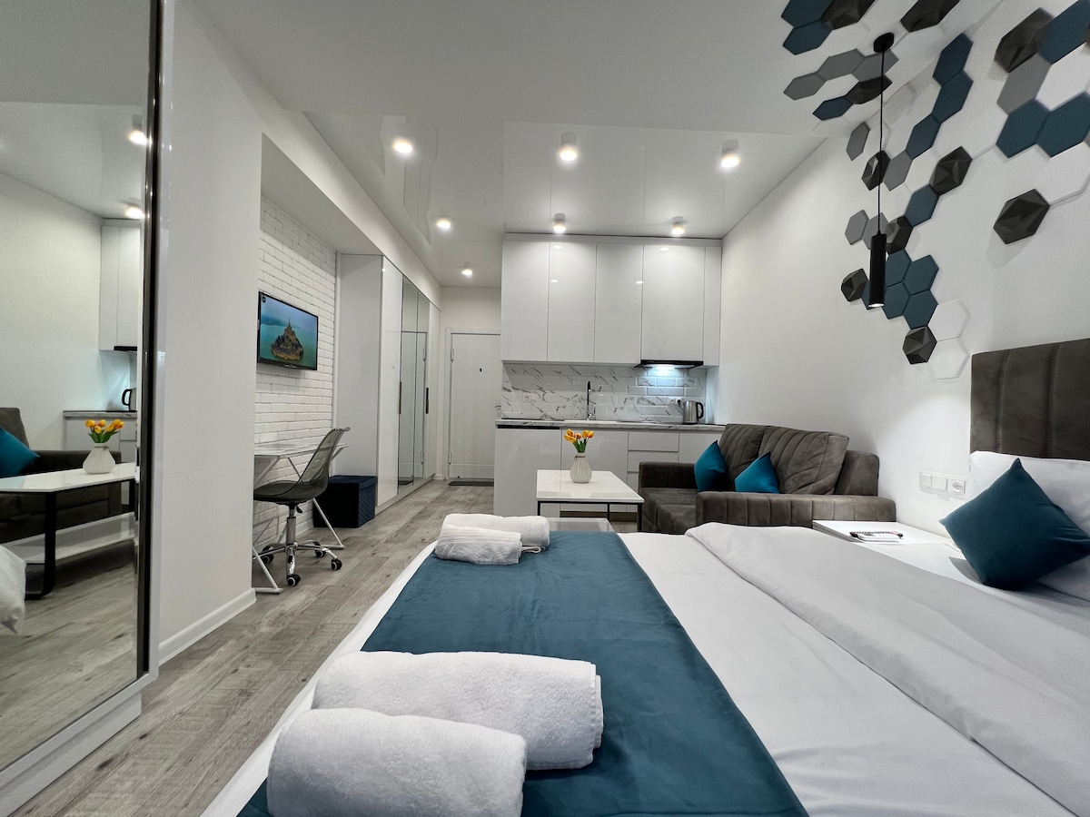 全新-位于大型中心的迷人单间公寓顶层公寓