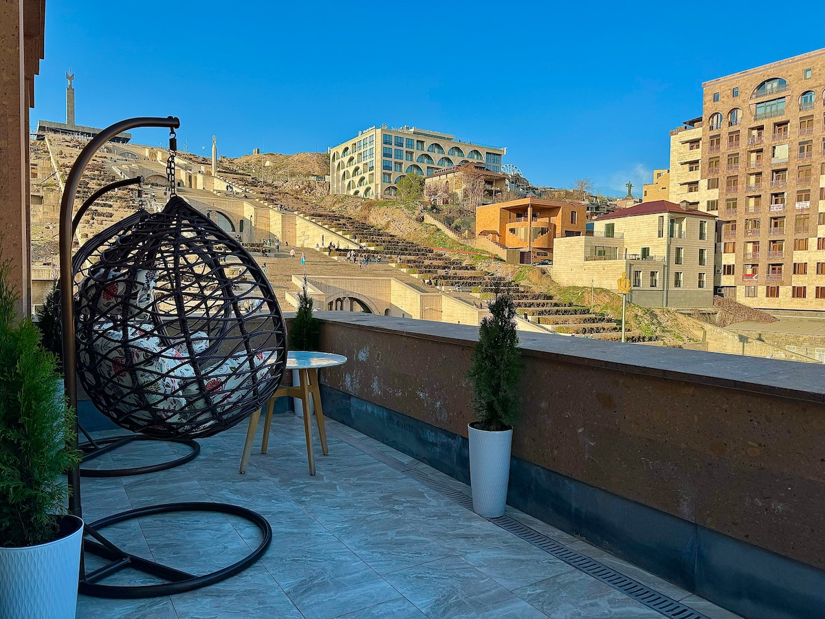 This special place is close to everything, making it easy to plan your visit. The apartment is located in Cascade, which is the most visiting place in Yerevan. Armenian people know that every tourist have to climb up all the stairs of Cascade to feel the beauty of Yerevan.