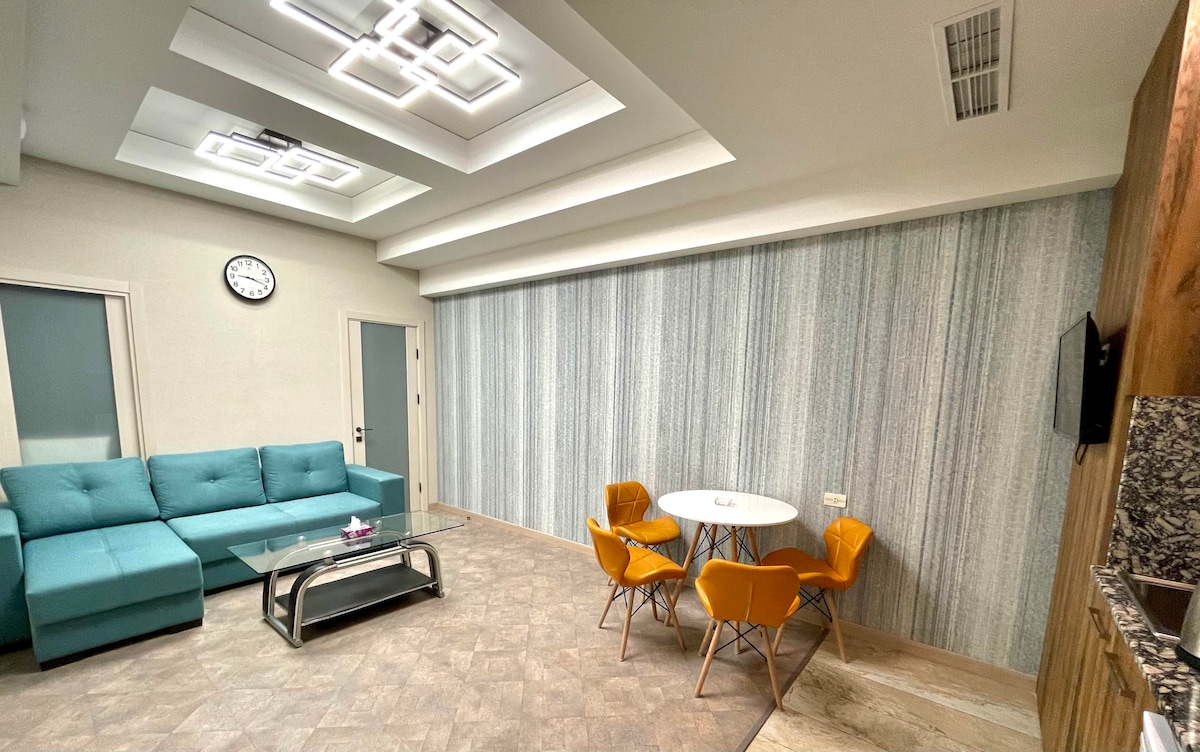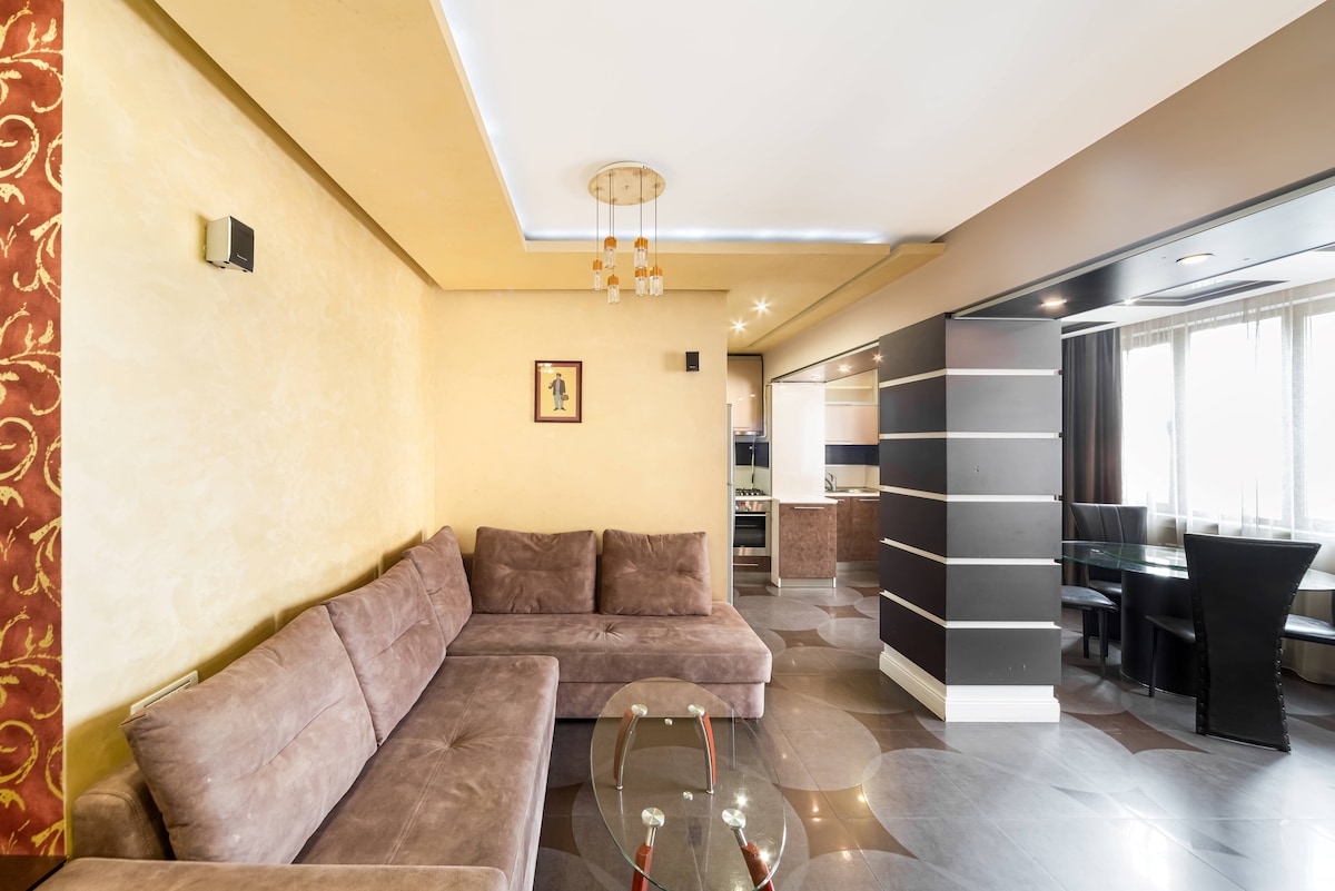 Супер квартира с дизайнерким ремонтом 50 кв.м. находится на 2-ом этаже 6-и этажного исторического здания в самом центре города рядом со зданием Оперы и Балета, парка художников и Каскада. Квартира имеет открытый балкон и оснащена всем необходимым для Вашего приятного отдыха. Очень быстрый интернет, смарт TV, кондиционер, отопление, фен, утюг, полноценная кухня и и полный комплект чистого белья. Перезагрузитесь в этом спокойном и стильном месте.
