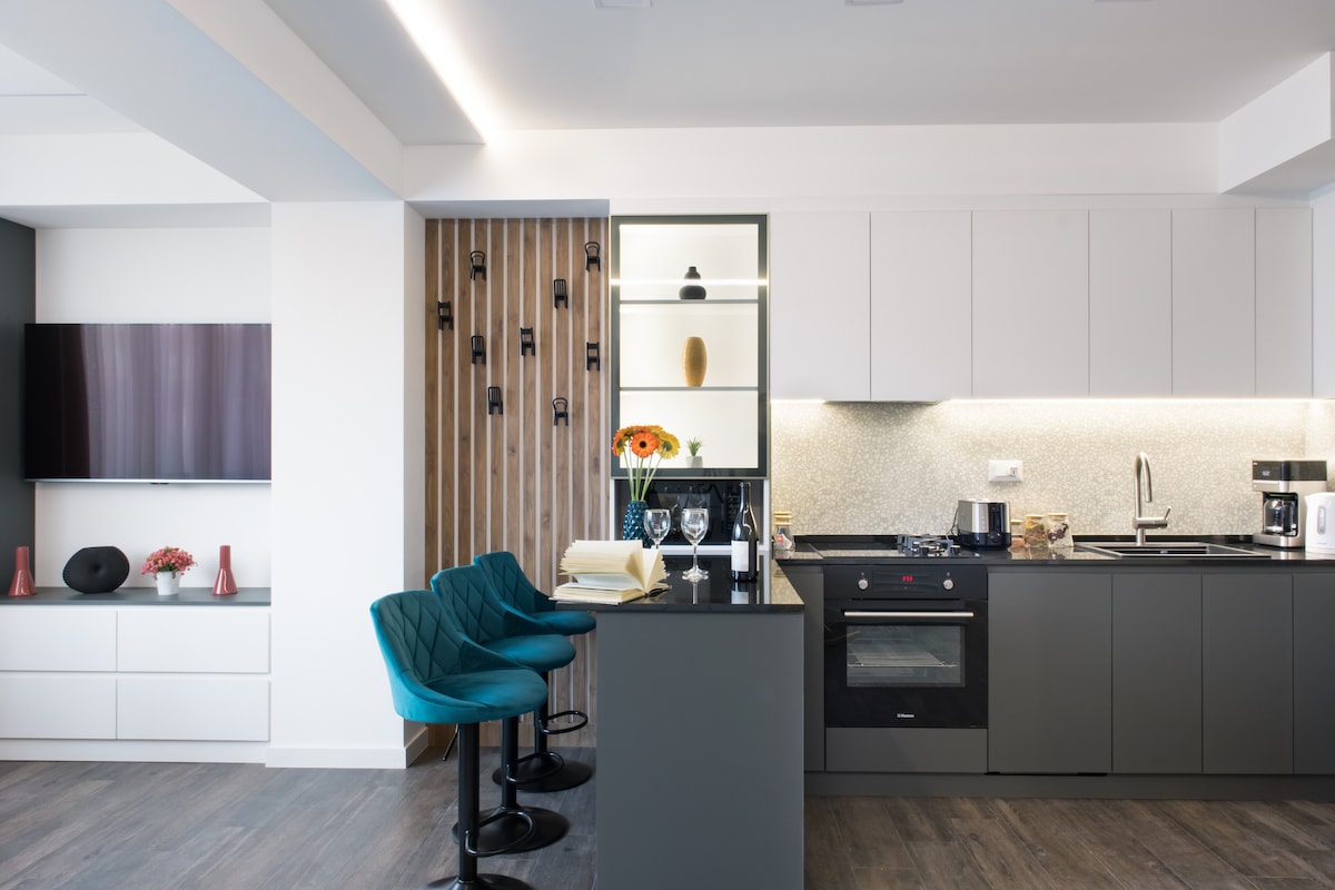 Arc & Stone | Welcome to our Design Award Winning property ✓ 24/7 self-check-in. ☆ Designer-Made. Award Winning☆ ✓ Elite Build ✓ 6/6 floor, ✓ New Modern Lifts ✓ Central Location ✓ 50 m2 ✓ Central Heating And Cooling ✓ Smart TV ✓ 300 Mbit WIFI ☆ "This home is a must stay" ✓ Luxuriously Fitted w/ Premium Amenities ✓ Fully equipped kitchen + Dishwasher ✓ Washer + Dryer. ✓ Fresh linens + towels ✓ Starter luxury toiletries Add my listing to your wishlist by clicking the ♥