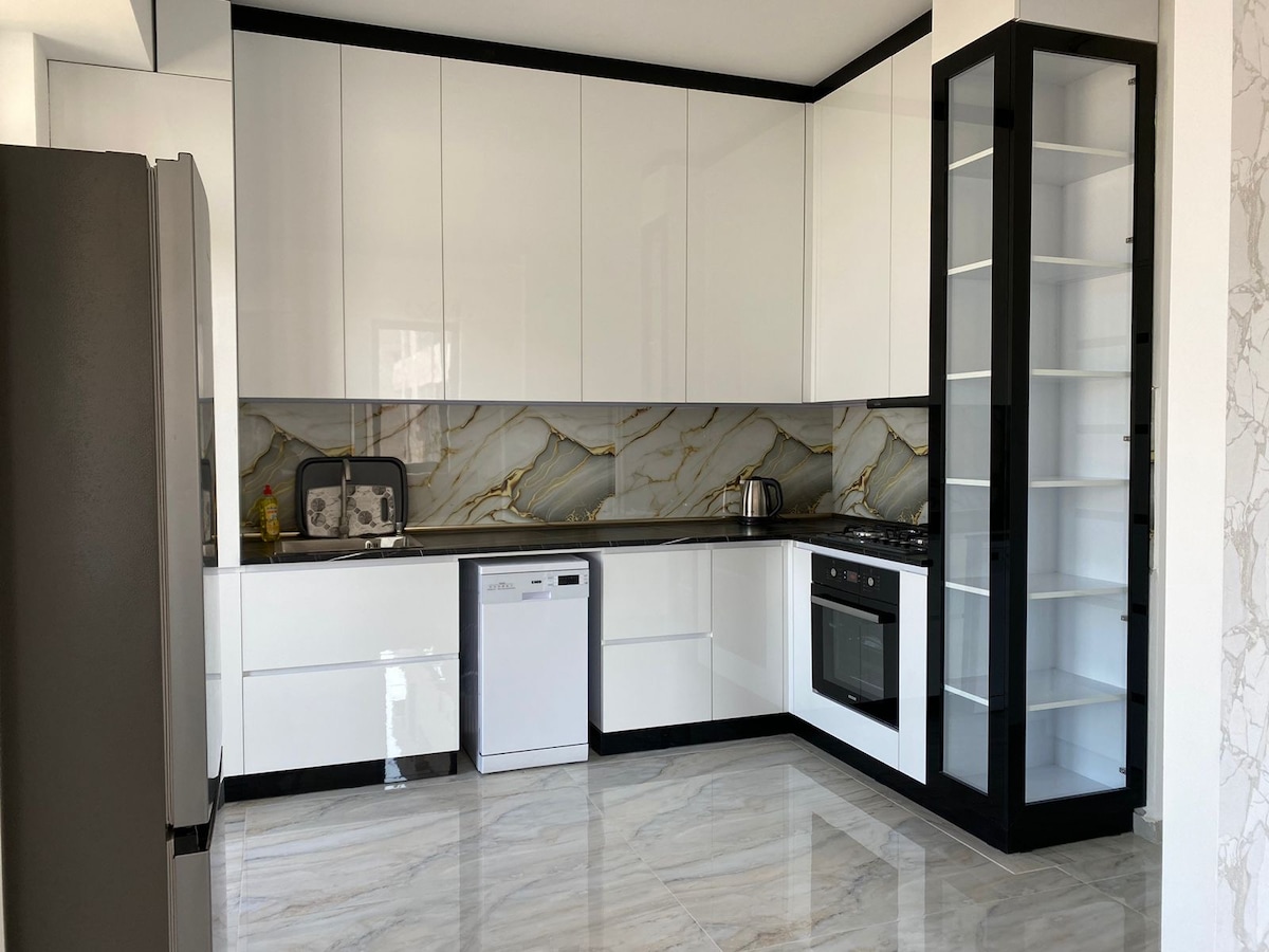 Fully renovated luxury 1-bedroom apartment with unique design, located on the 2nd floor, just a 10-minute walk from Cascade. Equipped with brand-new furniture and appliances, modern open-plan kitchen, washing machine, and comfortable bed & sofa. - 45" Smart TV, high-speed Wi-Fi, dedicated workspace. - 24/7 check-in. - 3/10 floor - Newly cosy renovation Accommodates up to 4 guests. Ideal for families, business travelers, and remote work.