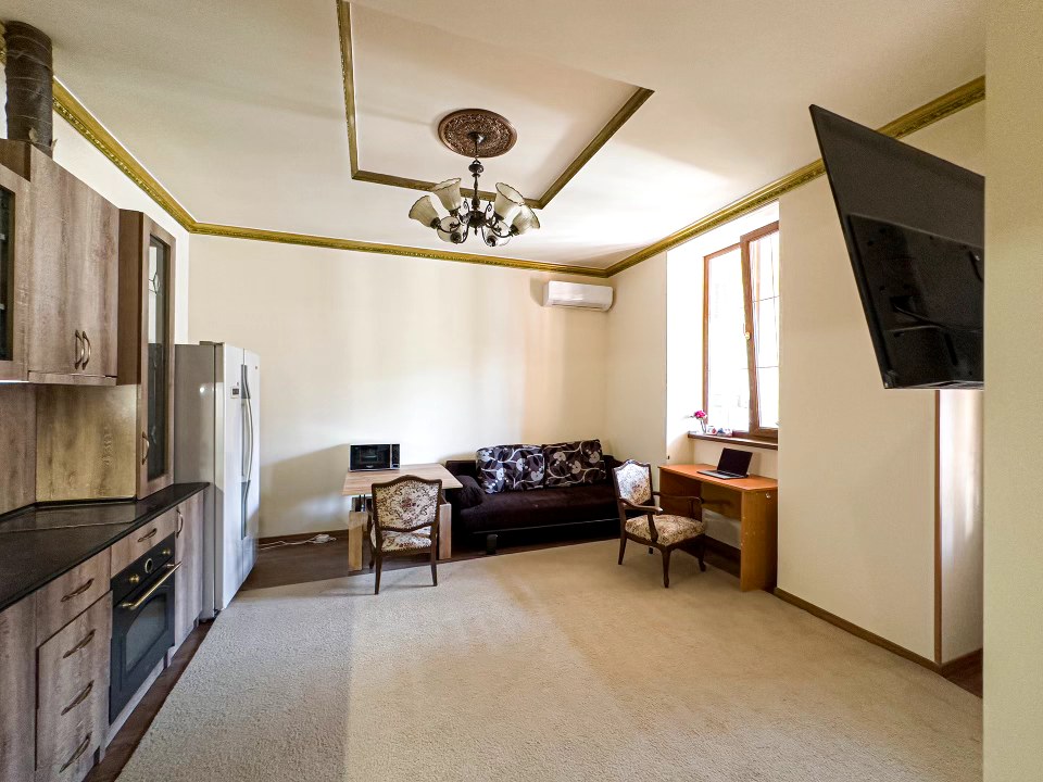 ⭐️ I am the owner of this Cosy apartment and would happily host you. It’s 2 min walk from Opera & Ballet theatre, one of safe & most iconic corners of city. Very central & quiet, crossing Tumanyan & Pushkin streets. 2nd floor, with open balcony. Fully equipped & newly renovated. The stone building was built during Stalin Era. ◦ 24/7 Self Checkin ❤️ ◦ 55 m2 ◦ TV, Fast WIFI❤️ ◦ washing machine ◦ air conditioner ◦ Balcony view ◦kitchenette & bedding ◦microwave ◦heating ☆ free parking in yard