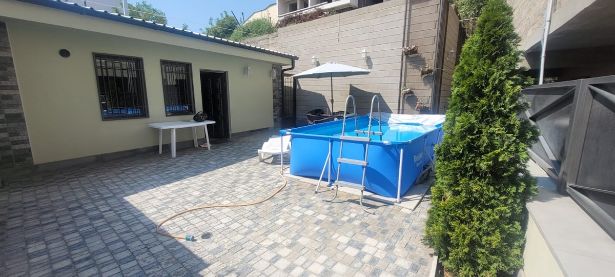 Welcome to our charming wooden villa, a perfect escape for families seeking relaxation and fun! Located in the peaceful suburbs of Yerevan, our cozy retreat offers a serene environment for creating unforgettable memories. The villa features a beautifully crafted wooden house with spacious living areas and 3 comfortable bedrooms. Enjoy our sparkling swimming pool and a variety of activities designed for all ages. Come and experience the perfect blend of comfort and nature!