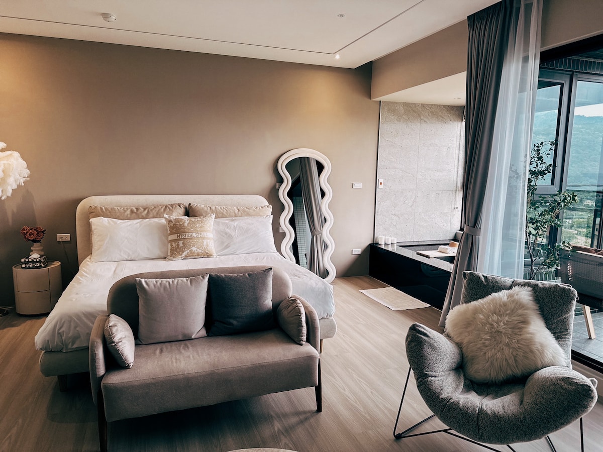 入住這間寬敞又安靜的房源,忘卻所有心中的煩惱 提供腳踏車,附近就有河堤車道可暢遊鄉間體驗田野風光 隔壁就是好然餐廳,住宿享優先用餐,平日用餐招待餐點 官方Line@goodspring預約一人最低不到900元。 好山雙人房(2F) 鄉村河岸風景,可加兩床,最多四人 房價 / 服務: 2800元/晚;春節房價:4000元/晚【除夕至初五】 (※房價不含早餐) 房間介紹: 好山以放鬆舒適的綠色為基底,兩張獨立的單人床適合淺眠怕被打擾的旅客,亦可併成一張使用。 加一人500元(含床墊、枕被、備品);6歲以下不佔床不收費。 房間設備: 43吋液晶電視、書本雜誌、觀景陽台、獨立衣櫃、免治馬桶、分離式衛浴、花灑淋浴、小椅凳、浴巾、沐浴用品、吹風機、熱水壺、冰箱、空調、WI-FI。 如有需要,民宿有提供兒童安全馬桶座、嬰兒澡盆。