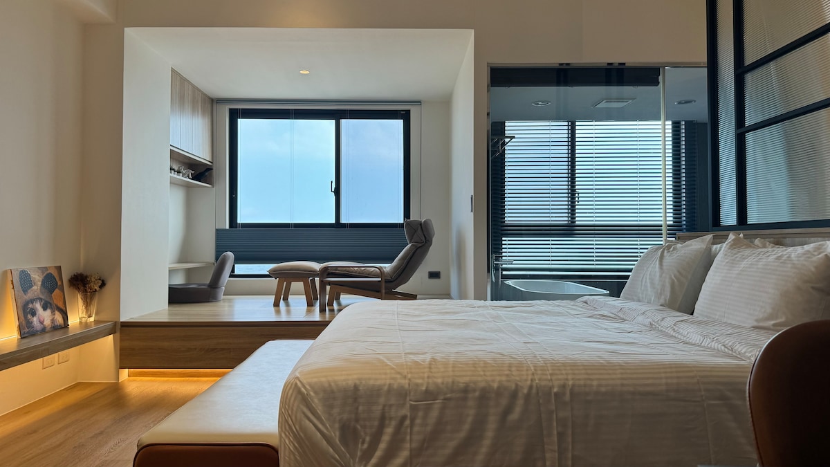 日出海景溫泉房@宜蘭頭城/ ins風/55吋電視/廚具/超chill陽台見龜山島及海景(無邊際泳池)