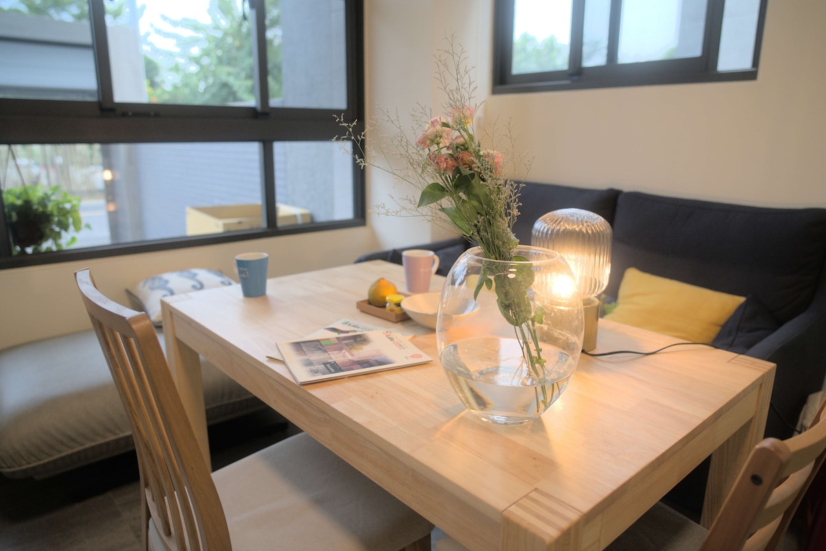 大家好!我們是坐落於台南鹽水小鎮的「月津港旅宿」! 歡迎大家來到充滿小鎮風情的鹽水!在這裡,您可以放慢腳步,漫步於鹽水的小鎮巷弄,感受歲月流轉的文化氣息,體會傳統與現代交融的生活美學,並沉浸在每一場精彩的慶典文化中。 每年底,鹽水小鎮化身為一座夢幻的月之美術館,燈光藝術裝置點綴於巷弄之間,帶來視覺與心靈的雙重震撼。過年佳節換上月津港燈節到來,整個月津港被絢爛的燈飾照亮,錯落的光影彷彿講述著鹽水的故事。此外,別忘了感受鹽水獨一無二的蜂炮文化,在煙火與蜂炮聲中體驗那份炸裂的熱血與活力。 旅宿以獨棟透天厝的設計,結合當地風格,為旅人提供一個舒適又溫馨的住宿空間。無論是與好友相伴探索燈節之美,還是與家人共享小鎮的獨特時光,鹽光旅宿都是您不可錯過的歇腳之地。 月津港旅宿——在光與影的交錯中,探索鹽水的文化與藝術,細細品味每一段難忘的旅程。 ✹ 此房型最多可入住5人(另外提供一張沙發床) ✸ 此房型是民宅透天厝裡的一個房間,位於二樓 ✸ 民宿尚有二人房型可供選擇 ✸ 可包棟(最多入住12人)