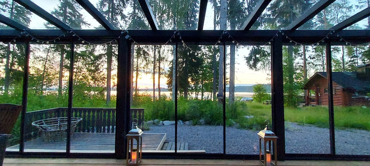 Beautiful and cozy cabin with bedroom and living-room in a peaceful paradisiac island with a big terrain accessed with rowing boat. Solar panels (200 W) & batteries for lighting & appliances. Gas. Half big island in which you can enjoy peace, a diverse nature, mushrooms, berries, birds & beautiful sunsets. Own sauna and lake with views to the afternoon and evening sun. A bedroom with beds for 4 people (1 bigger for 2 ppl, 1 smaller and an extra mattres). Cozy livingroom and big terrace.