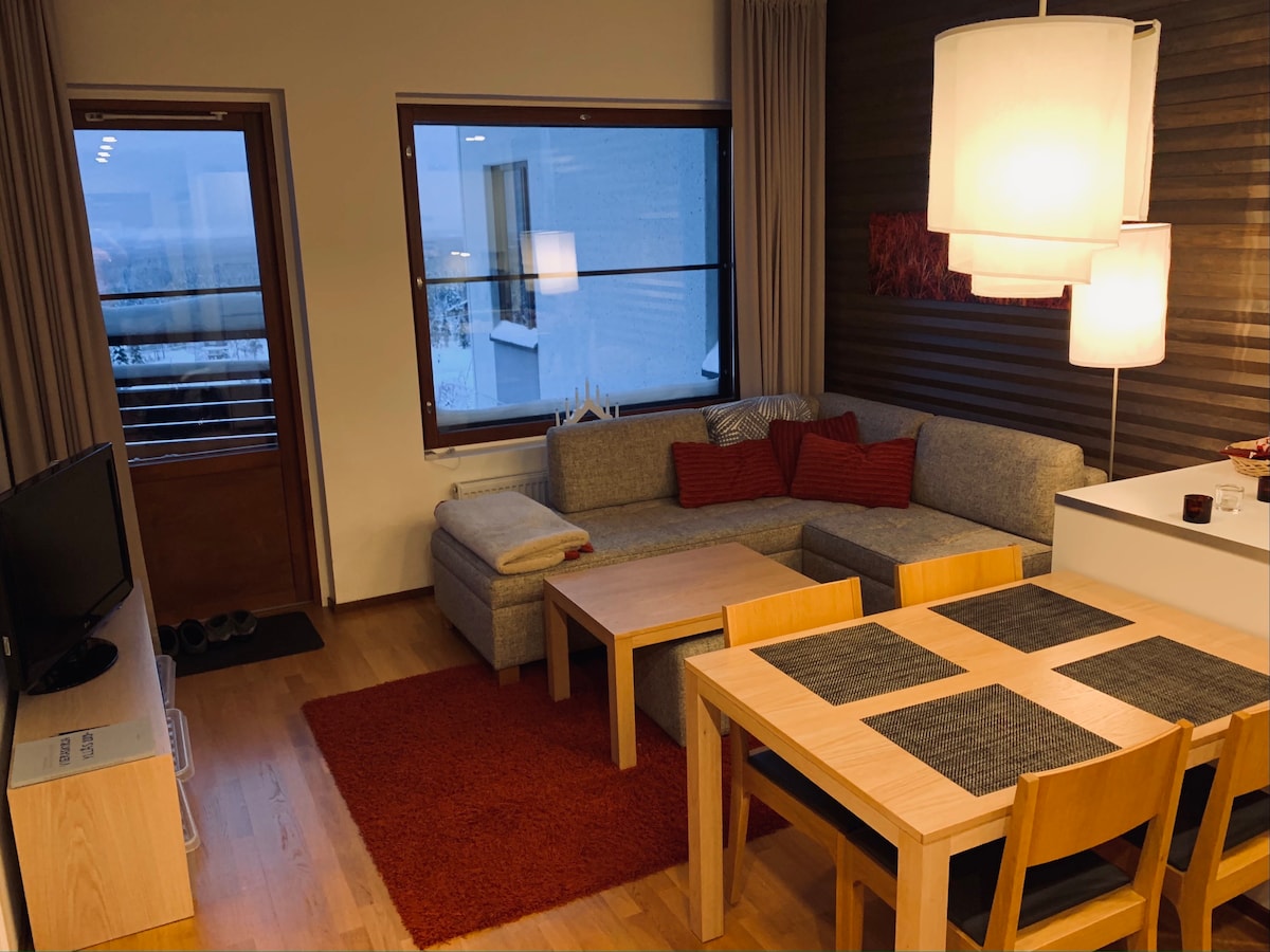 位于埃卡斯隆波洛的舒适两室公寓,靠近滑雪道