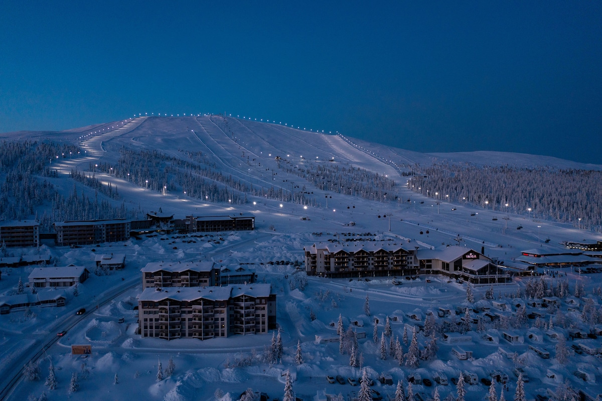 Top-floor (45 m²) ski-in ski-out apartment at Ylläs Ski Resort accommodating 5 guests. The apartment features a bedroom with a 160 cm wide double bed, an alcove with a 120 cm wide bed and an 80 cm upper bed, a fully equipped kitchen, a bathroom with a drying cabinet and a washing machine. Separate toilet. Walking distance to the ski slopes, equipment rentals, restaurant services, nature trails, and Ylläs Bike Park. Excellent for families. Bed linens and final cleaning are included in the price.