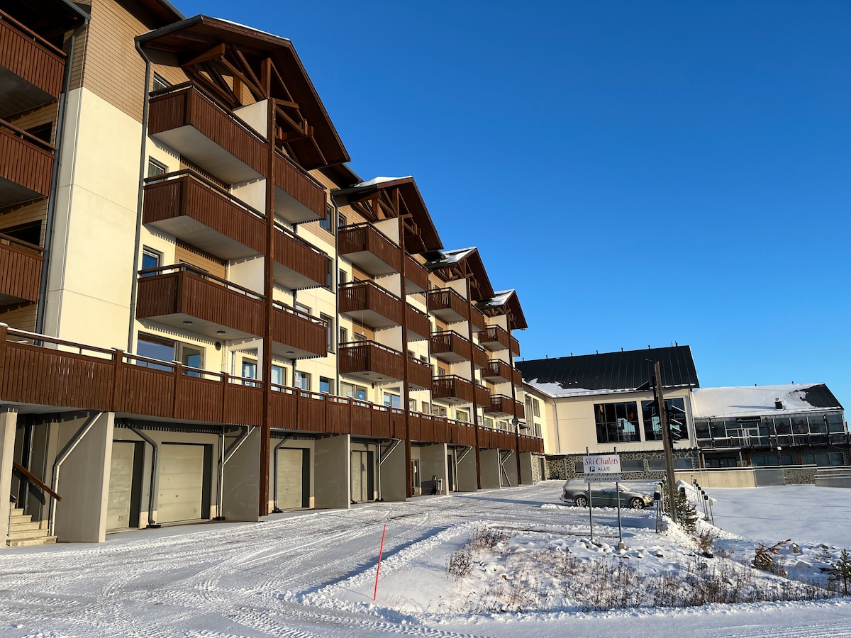 A Ski-in&out apartment completed in 2023 with two bedrooms and easy access to the ski tracks and slopes, hiking and cycling trails. The apartment has modern amenities and bed linen and towels are included. Both bedrooms have a double bed and plenty of closet space, a private sauna that heats up quickly, a private ski storage room, and a bike storage and ski maintenance room in the building. Kolari railway station and Kittilä airport approx. 40 km away, with bus/taxi connections. Welcome❄️✨