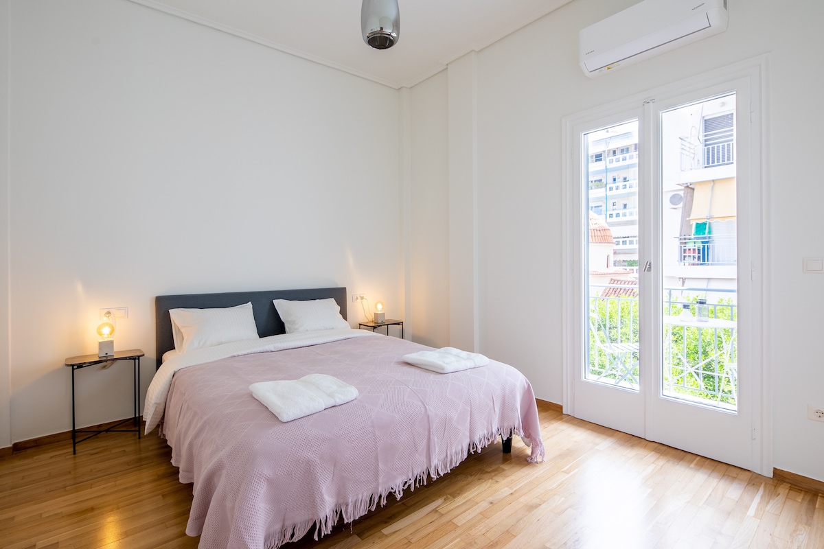 Welcome to our cozy, minimal apartment in peaceful Neos Kosmos, Athens. Conveniently located near Metro and Tram stations, explore the city's treasures with ease. Renovated with 2 bedrooms, a fully equipped kitchen, and free WiFi. Plenty of space (61 sqm) for couples, families, or friends. Supermarkets, coffee shops, and Greek souvlaki nearby. Unwind, explore, and create memories in captivating Athens. Book now!