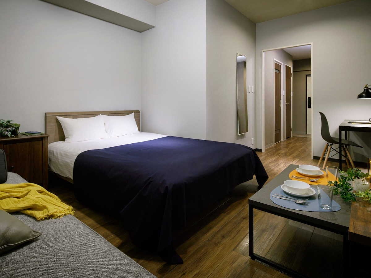 ダブルベッド2台、調理器具、映画用プロジェクター、スクリーンとキッチン付き、4名様まで宿泊可能なお部屋です。 <おすすめPOINT> ■新大阪駅から徒歩約5分、コンビニ徒歩2分 ■鍵はスマートロックでキーレス滞在♪ ■キッチンには調理器具・湯沸しポット・電子レンジ有り☆ ■長期滞在や出張にもピッタリ♪ ■コインランドリー完備で長期滞在や出張にもピッタリ♪ <その他アメニティ類> 空気清浄機・エアコン・ヘアドライヤー・シャンプー・コンディショナー ボディソープ・ハンガー・掃除機・プロジェクター・スクリーン 【 アクセス 】 JR京都/東海道新幹線 新大阪駅より徒歩5分