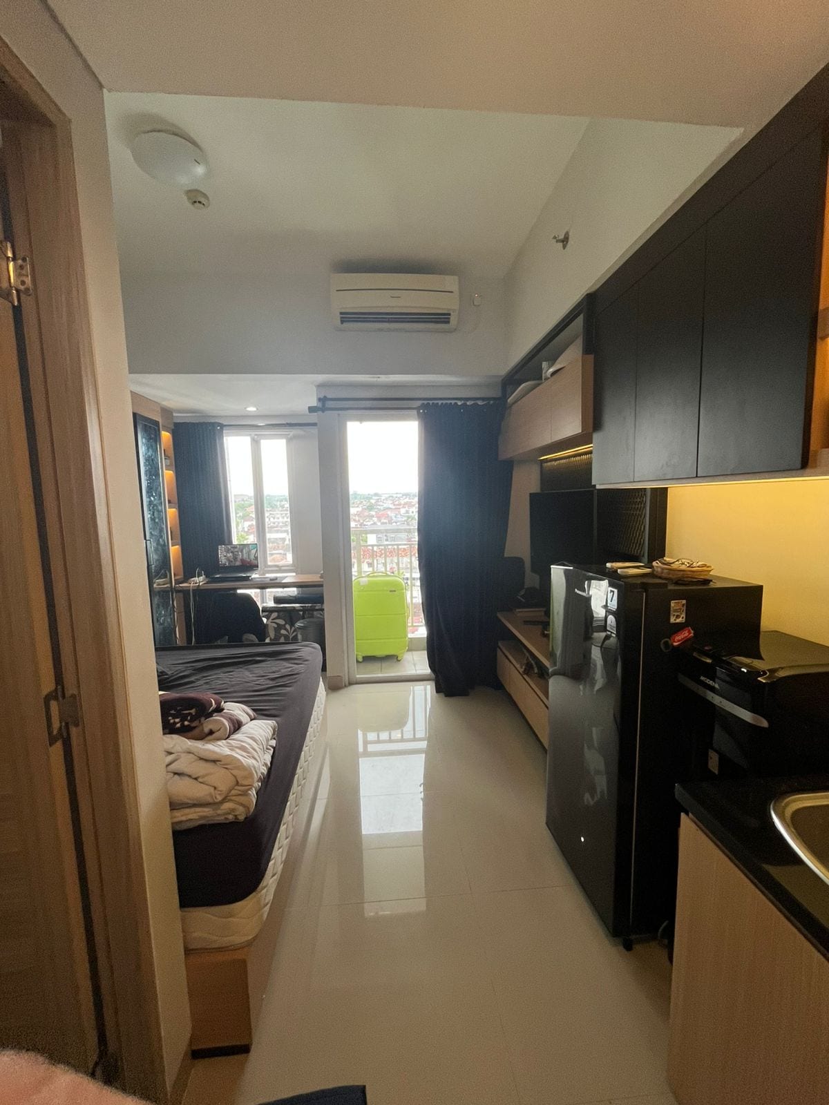 Stay in Style! Yogyakarta Lantai 8 dengan City View Menawan ✨ Interior Modern & Cozy: Desain kamar yang estetik dengan sentuhan wood paneling, pencahayaan warm white yang menenangkan, dan dekorasi dinding yang elegan. Lantai 8 yang Spesial: Posisi lantai yang ideal untuk mendapatkan view terbaik tanpa gangguan kebisingan jalan raya. Fully Furnished: Dilengkapi dengan kitchen set cantik bermotif tegel kunci, kulkas, microwave, TV, AC, serta area kerja/belajar yang nyaman.