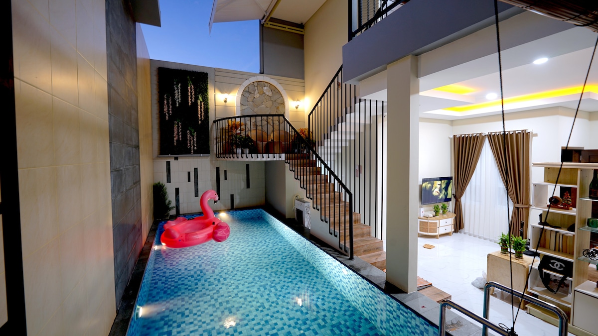 Villa Omah Ayu menawarkan kenyamanan beristirahat bersama keluarga di lingkungan persawahan hijau dengan udara segar dan suasana tenang Berjarak 25 menit dari pusat kota Yogyakarta, Villa Omah Ayu berada di tengah lingkungan pedesaan yang masih hijau. Lokasinya tidak jauh dari pusat kuliner Jalan Kaliurang. Bangunannya modern aesthetic dengan fasilitas lengkap. Ada kolam renang, gym dan ruang santai yang bisa memanjakan para tamu Tersedia akses Wi-fi gratis di seluruh area