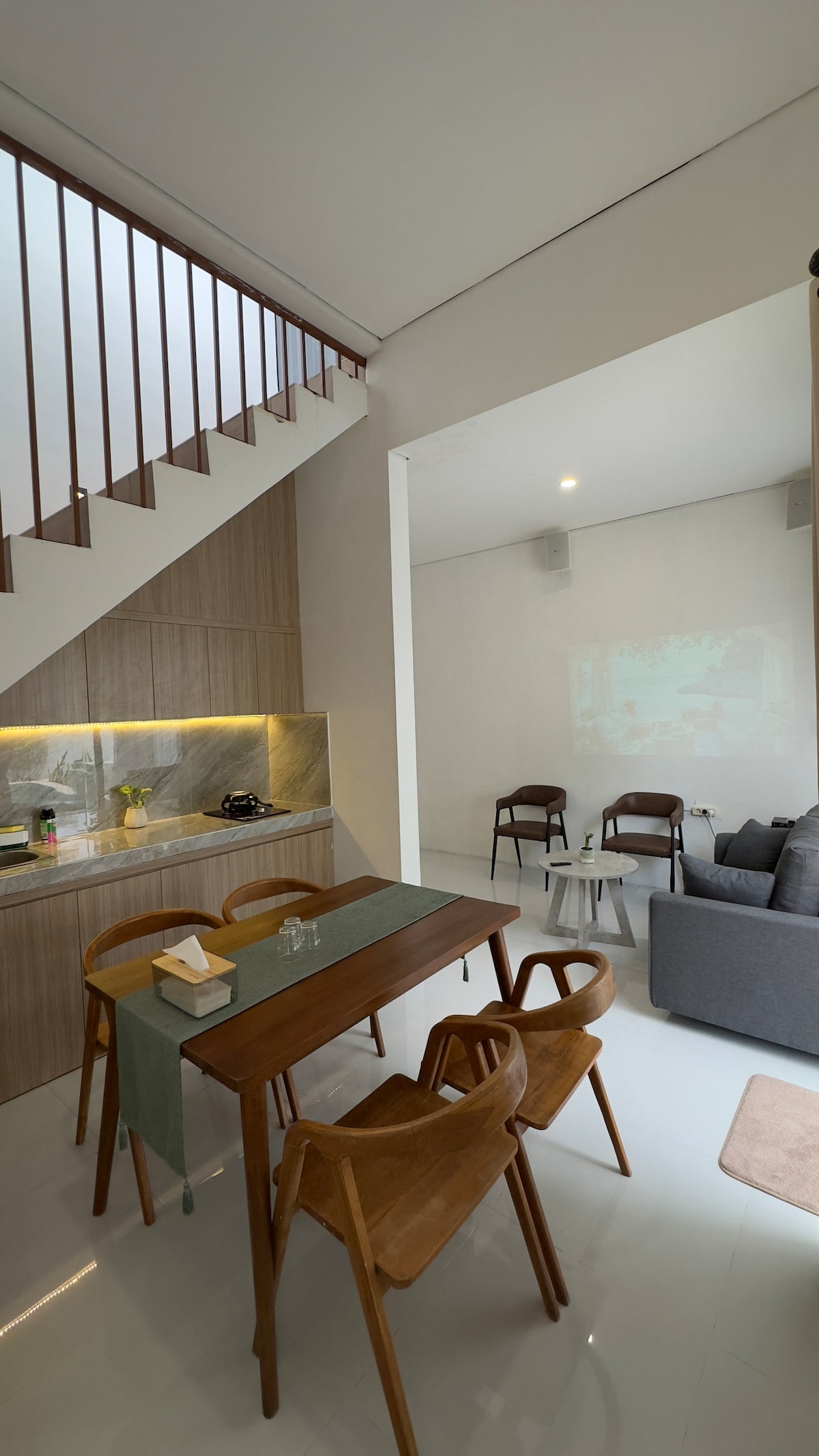 Its A New Build, A stylish, minimalistic villa with industrial style located in Most Interesting Area, North Yogya. This villa comprises of two bedrooms with Air-con, where the main bedroom upstairs is completed with an industrial-styled bathroom as well as comforting bath-up. Second bedroom is located on the first floor with a separated bathroom. And also completed with a kitchen, living room balcony along with backyard. And from the balcony you can see rice fields and watch the sunset. 🌇🫶