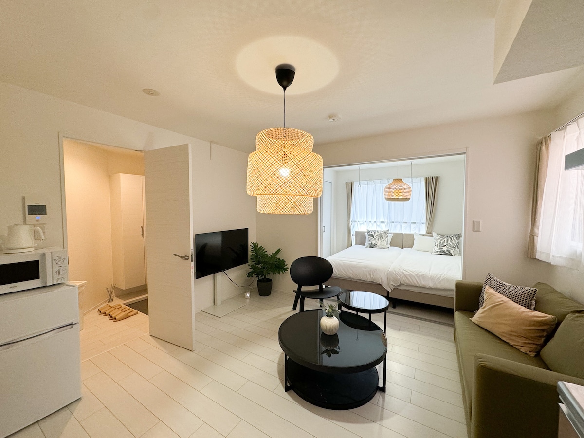 Enjoy your stay in a brand-new 36㎡ studio near Yokohama Station. Perfect for up to 4 guests with a double bed, single bed, and sofa bed. The space is bright, simple, and fully equipped with a kitchen, private bath, high-speed Wi-Fi, and a washer with dryer—ideal for families, friends, or business trips. Just 27 min direct to Shibuya by train. Easy access to Minato Mirai, Chinatown, Kamakura, and Zushi. Self check-in via smart lock. Great for long stays & workations.