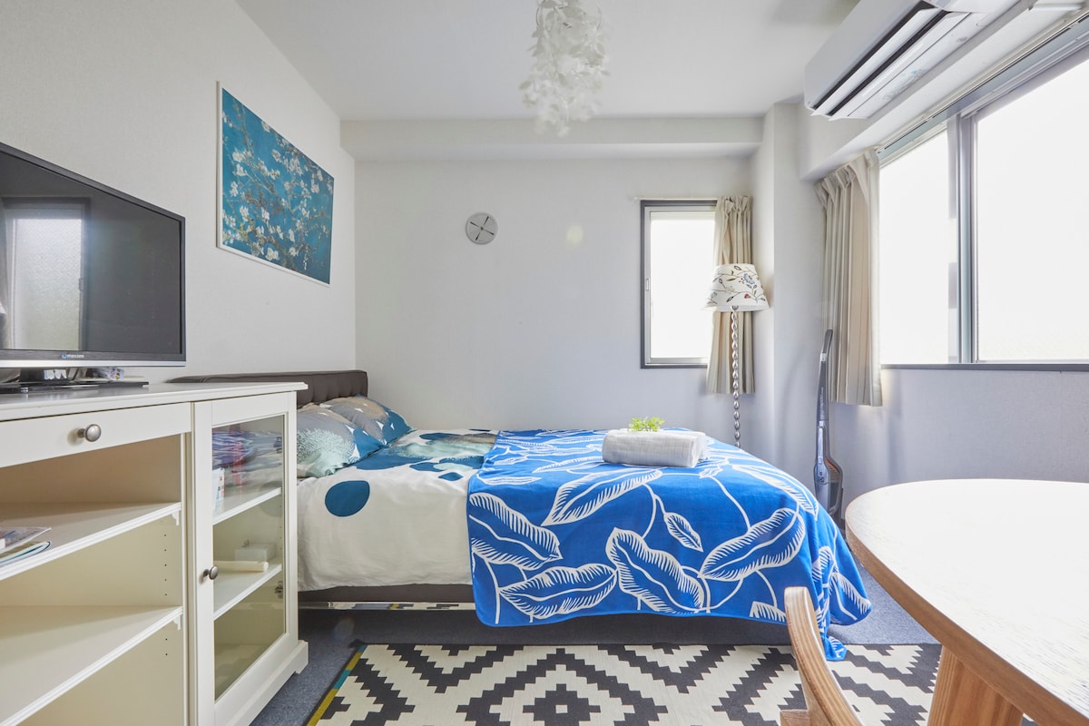 A designer's choice second-floor studio with decent appliances and pleasant interior touch is your best choice for the Tokyo trip. Only 4 minutes walk to subway, this 25m² apartment has ultra-speed wifi, a 24-hour gym center opposite the road, a series of great supermarket and restaurants nearby. Though the neighborhood is super quite, you can get to any trendy spots like Shibuya and Shinjuku by direct train within minutes. The last train is until midnight so you can go around Tokyo with ease.