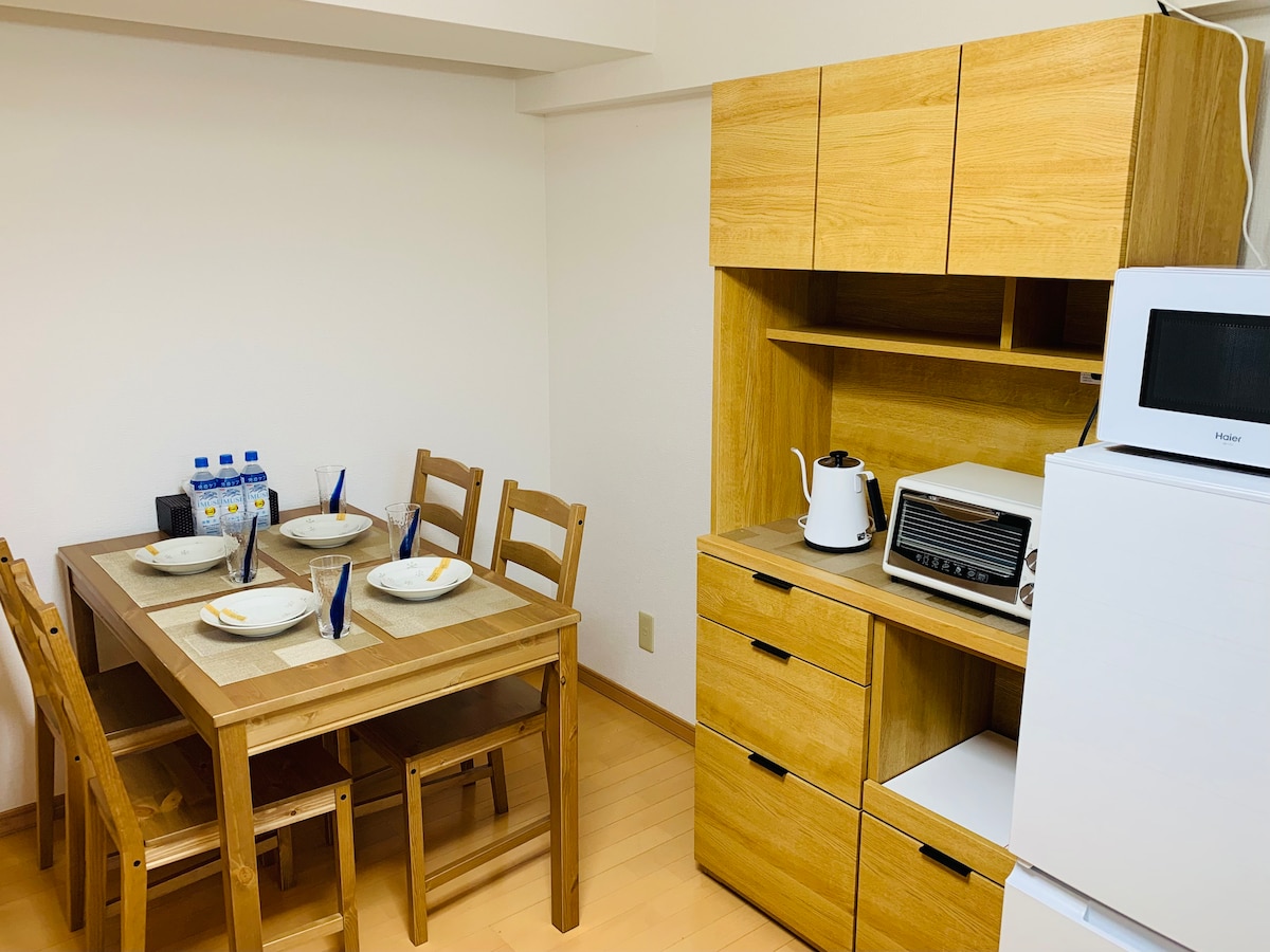 和室とキッチン room wi-fi 長期割引あり。駅近、学生歓迎!