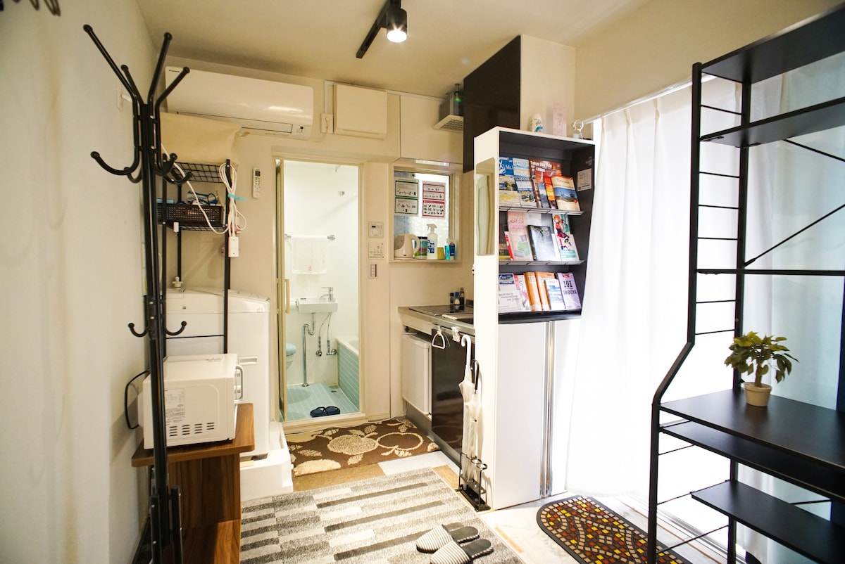 這個獨一無二的住宿將讓你物超所值。 有私人衛浴設備、浴缸、與廁所、不需要和其他房客共用。 這個房間空間只能放隨身包包、或者小行李箱。大行李必須要放在大廳的行李架上. 交通:飯店位於靠近羽田機場、品川站、東京站、橫濱站 成田機場-品川站-大森站 步行15分鐘,巴士4分鐘 羽田機場-平和島站(京急線)16分鐘 環境:周圍有餐廳、便利商店、商店街、堂吉訶德、超市、自助洗衣店 設備:每一個房間都有獨立衛浴和廁所,不和其他房客使用 一樓有餐廳廚房可以提供烹飪食物 服務:提供入住前和退房後免費寄放行李 不提供每日清掃更換備品等酒店式服務,如有需要請提前聯繫,我們會為您安排服務。
