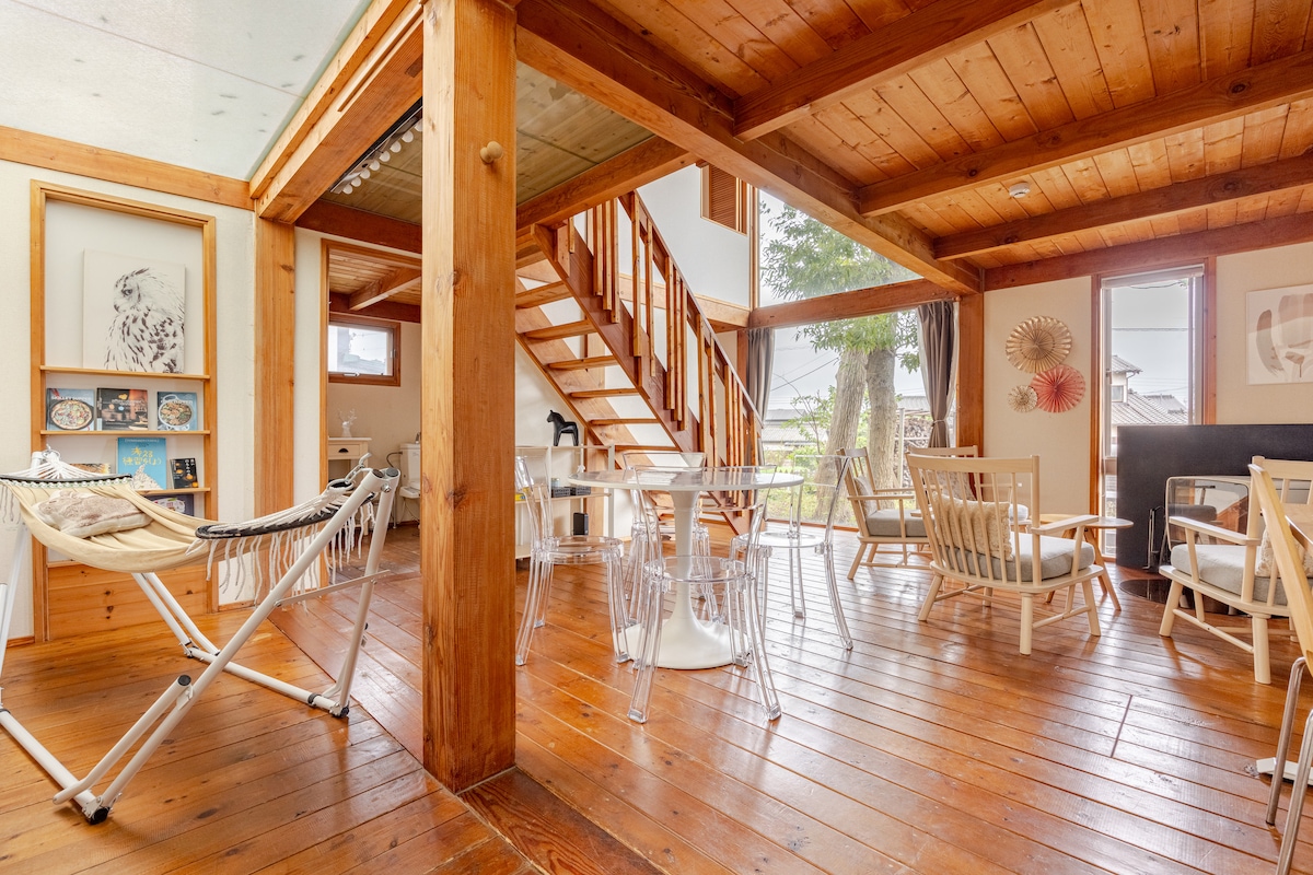 Experience a unique blend of Scandinavian and Japanese design in this renovated 86-year-old, two-story home in Sangenjaya. With 80㎡ (900 ft²) of bright space, a 3-meter ceiling, and a dramatic 7-meter ceiling above the kitchen, it’s perfect for families and small groups. Just 6 minutes to the station and 4 minutes to Shibuya, the house offers the perfect mix of calm and city convenience in one of Tokyo’s most beloved neighborhoods, Sangenjaya.
