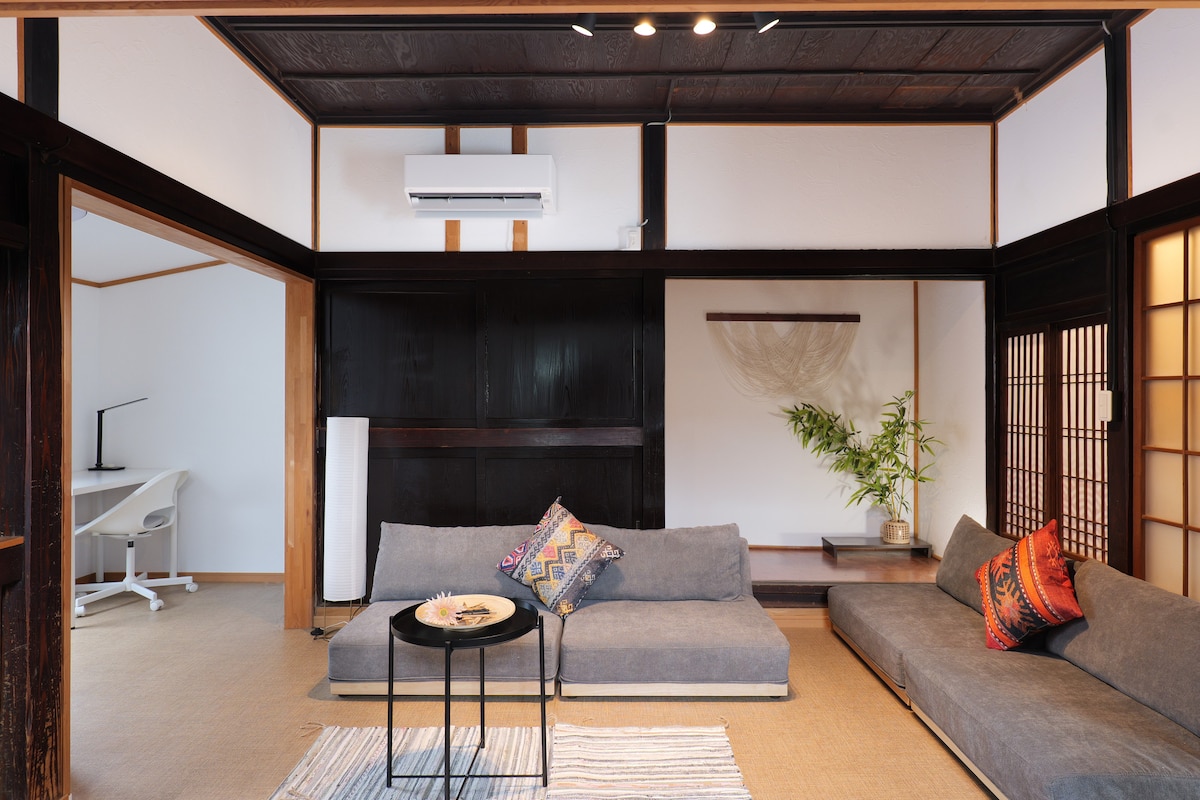 A renovated traditional row house in a retro neighborhood. Shops, bakeries, boutiques, and studios are within walking distance, where you can enjoy local culture. A private sauna (swimwear required) is available by reservation. Free Wi-Fi and basic amenities are provided. Notes: ・Surrounded by nature, insects may appear. Spray provided. ・Narrow, sloped roads nearby. Drive carefully. ・A camera verifies identity and guest count. ・Café next door; staff may stay overnight. No parties after 11 PM.