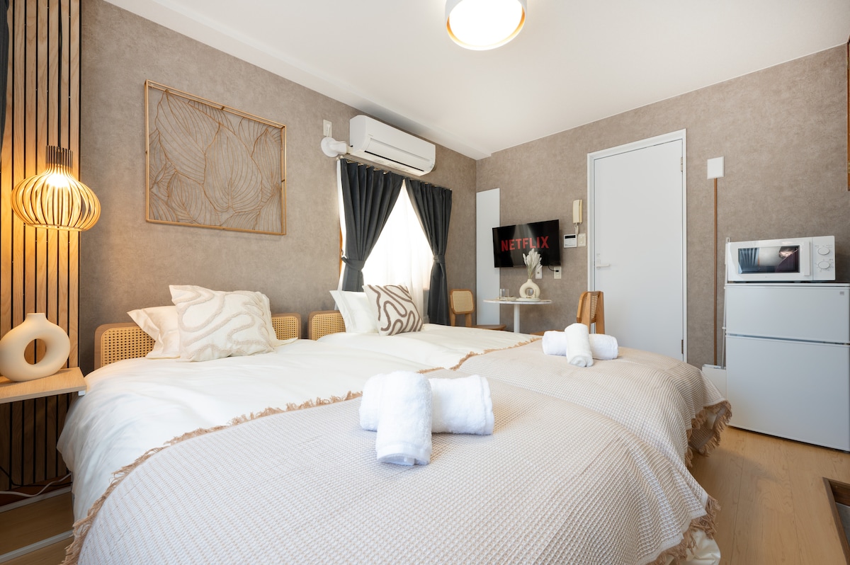 Experience the feel of a standard-sized Tokyo apartment in this superior studio for 2. Enjoy restful nights on a queen-sized bed and a functional layout ideal for remote work. Whether you're balancing work and wellness or simply unwinding, this space is a great urban sanctuary.