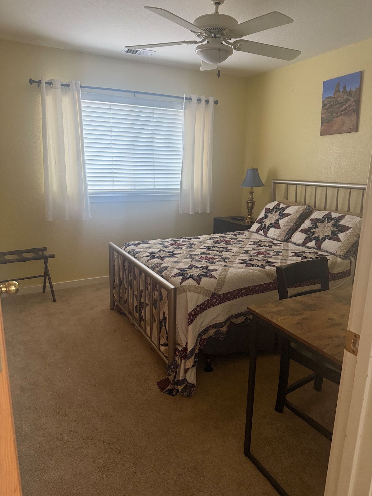 Contemporary farmhouse chic - the Rhino Room is an airy and bright getaway. Enjoy your own private bedroom with private entryway and parking as well as a quaint ensuite bathroom.Self- check in. We maintain clean and sterilized environments for our guests, using current industry standards for sterilizing hard surfaces, appliances and guest areas. We are a licensed short term rental. Ask about our other Napa listings if the dates here are booked.