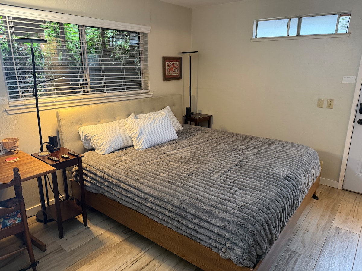 Private entrance with self-check-in. Private bathroom. 15 minute walk to UC Davis, 20 minute walk to downtown Davis No shared spaces Low cleaning fee Monthly discounts available Pets Welcome All the amenities you need for your stay in Davis. Refrigerator, microwave, coffee maker, and must-haves for eating away from home. Table for eating or working. TV includes Netflix, Amazon Prime, Hulu, Max King Mattress is new June 2023, medium firmness New nice flooring Nov 2024