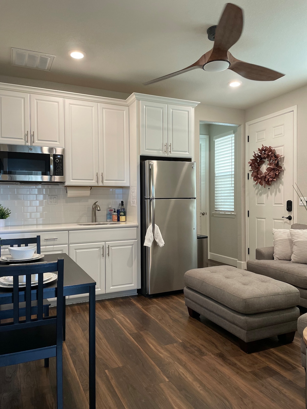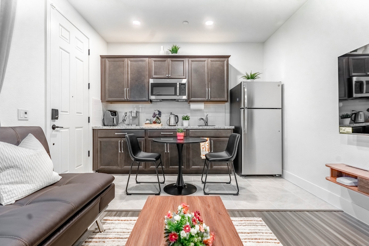 Tiny VaultedHaus is new, completed in 2021. Located in Historic Downtown Vacaville, walk to Restaurants, Cafe's, parks. Stylish & Modern. A large covered breezeway separates you from main house, no shared walls, private entry w/ door code. Attention to detail was made to ensure our guests a comfortable & stylish stay. Comfy Queen bed, toiletries, stocked kitchen & private patio. Napa, S.F., Sac, Winters all at your fingertips. Dog allowed w/ permission & $65 pet fee.