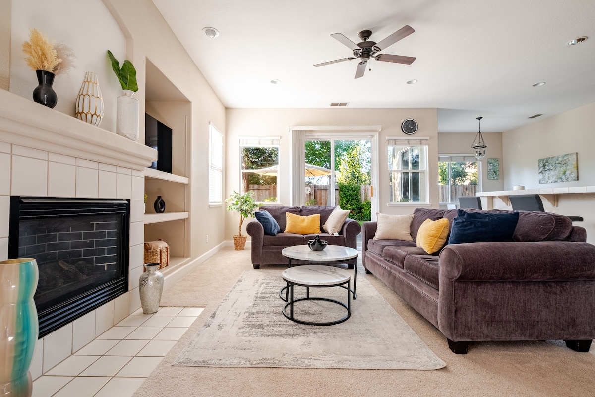 Pack Lighter and wake up refreshed in a quiet neighborhood that's minutes from the best Sacramento attractions! What you will love -Our Reviews Speak For Themselves! -Newly Built, Upscale, & Open Concept! -Fully loaded kitchen! -Games for the whole family! -2000 Sq Ft! (Approx. 185 square meters) -Laundry Room! -5 Min. From Shopping, Rivercat’s Stadium, & Dining On The Sacramento River! -EV Charger -Fenced Back Yard! -Dog Friendly!