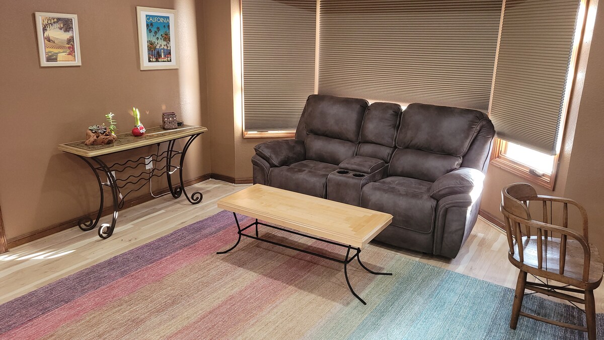 Welcome to our Guest Nest! This stylish in-law suite with a private entrance is the perfect place for a safe, secure, and peaceful stay. The Suite features: Bedroom: Adjustable queen bed, walk in closet, and 55" smart tv. Bathroom: Full private bath. Kitchen: Fully stocked with a microwave & convection oven. Laundry: Full-size washer and dryer for your convenience. Living Room: Comfortable recliner with heat & massage settings, and another 55" smart tv