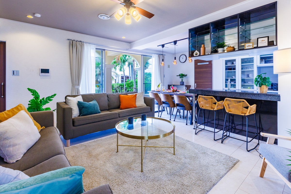 海洋疗愈屋位于冲绳恩纳村,是一栋“冬天也能欣赏海景”的独栋别墅 ⭐️ 荣获超级房东与 Guest Choice ✨全屋海景 ✨ 150㎡ 可容纳 8 人,4 个免费停车位 ,2 间浴室,适合家庭与团体入住 ⭐️ 冬季冲绳气候温和、景点人少,是安静度假的好季节 ⭐️ 挑高客厅、桌游 🎲、儿童秘密房等设施齐全,深受三代家庭喜爱。 距 Blue Cave 车程 5 分钟 🚗,步行可到咖啡馆与海滩 可在露台看夕阳 🌅、在室内享用火锅或料理 🍲、阅读或远程办公 ☕📚💻 欢迎在温暖舒适的空间度过冬日冲绳的惬意时光 ✨