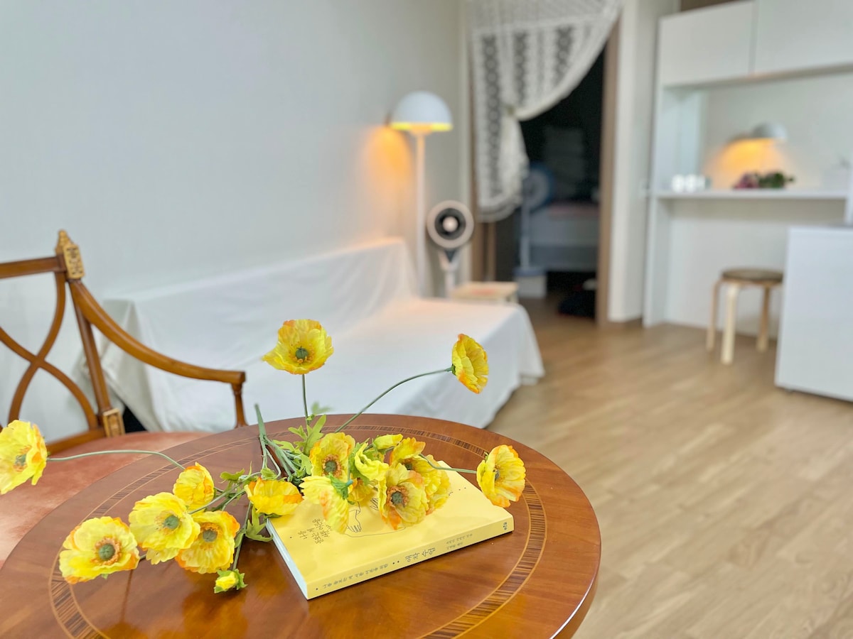 设施齐全的高级公寓 - 干净,方便。 公寓治安非常好的街区,步行即可到达梦想塔、免税店和市政厅。 交通方便,附近有许多公共汽车站。 *清新整洁的房间 *高端家具配置 *生活必需品:配有床单,毛巾,Netflix(个人帐户),吹风机,洗发水/护发素/沐浴露,洗手皂,衣架等。 *室内具备的设施体条件:电视,无线网,空调,地暖,热水器,洗衣机,无线吸尘器,擦地湿巾。 *厨房:备有微波炉和基本厨具 了解更多信息: IG @hiresidencesjeju