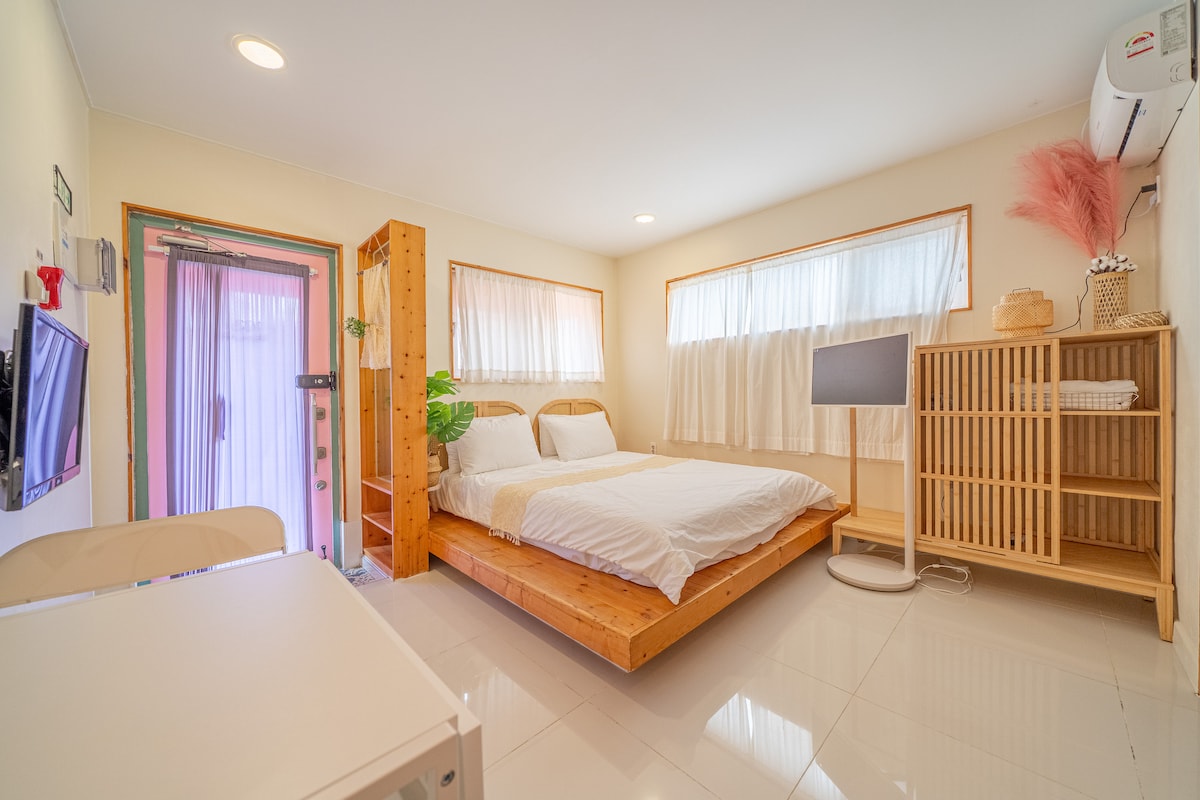 距离济州机场10分钟,距离海边2分钟步行路程。位置优越的舒适住宿,10分钟到机场。