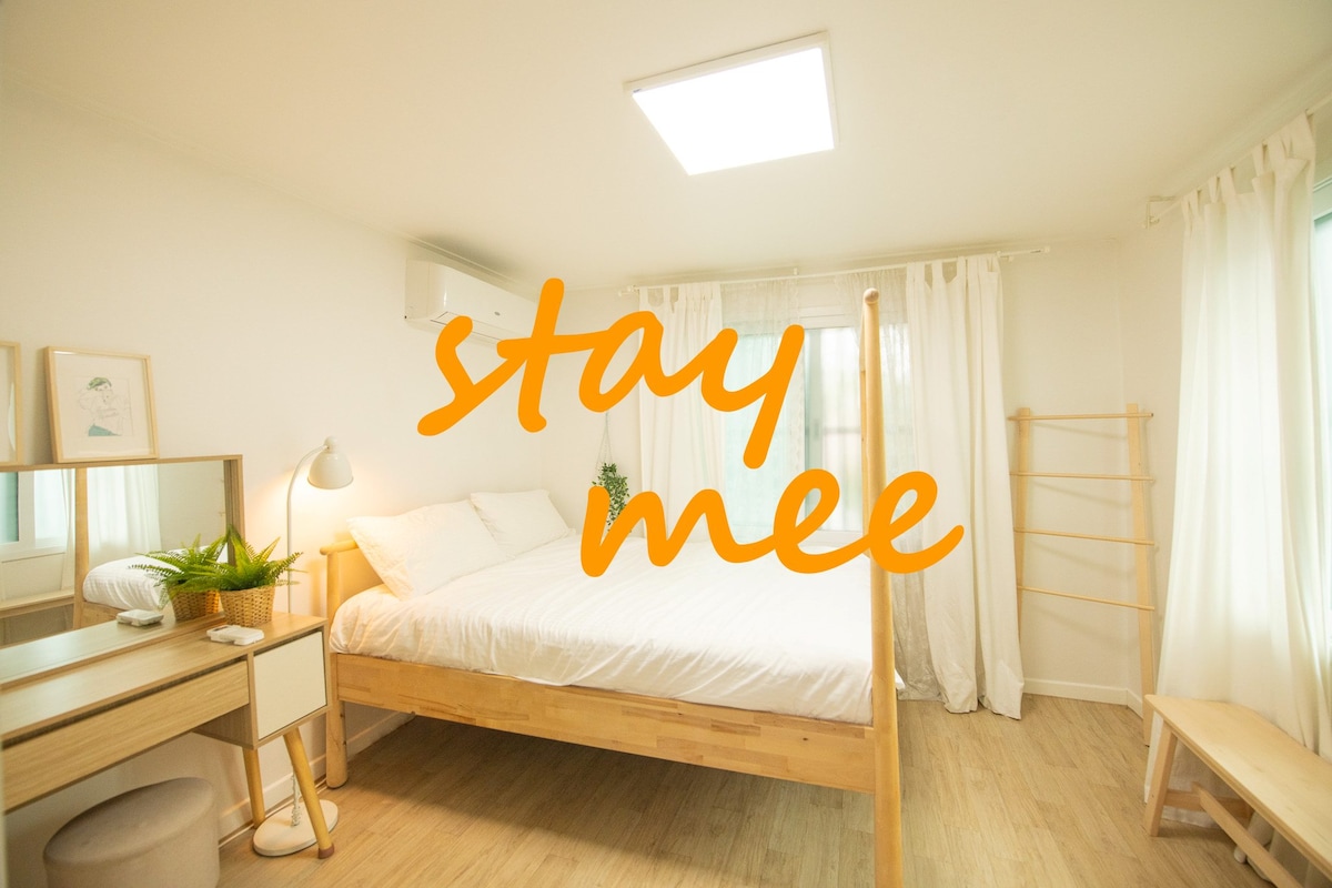 明亮的现代单间公寓@弘益大学站6号出口。