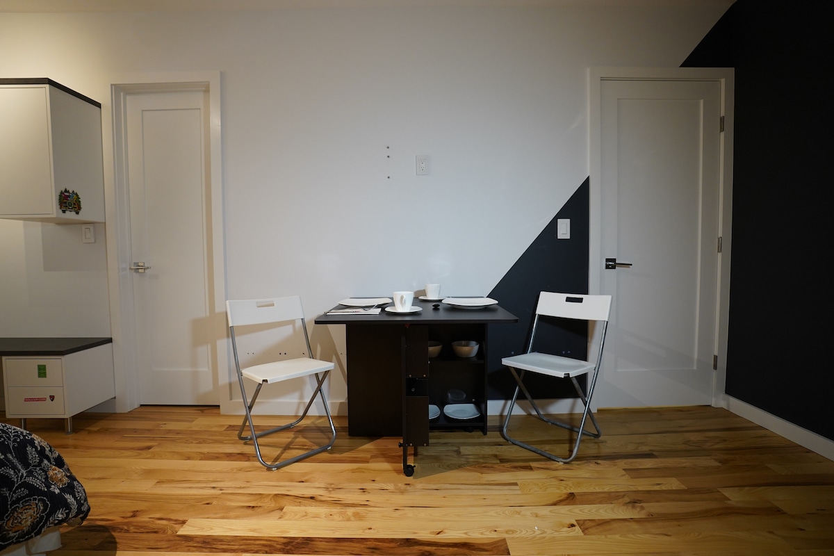 Come and be sure to enjoy a cozy and comfy stay at our newly renovated studio apartment. kitchen is well decked out. The space boasts a multipurpose area that can be used for dinning, recreation and work. Your own full bathroom that is clean to the touch. 50 inches smart tv with internet access. Your own private parking and entrance. Self-checking-in. Apartment is cool or warm to perfection by the latest in split unit ac technology. apt. is about 7 minutes' walk to the 2 train to Manhattan.