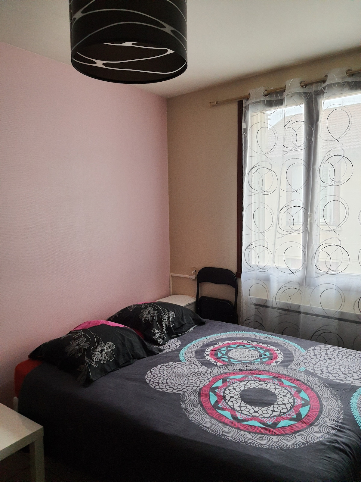 Appartement en rez de jardin , climatisé, totalement indépendant (arrivée autonome) et comprend une grande chambre : lit King size avec télé 40", une sdb avec wc, cuisine ouverte sur un salon avec un canapé convertible1,60m de bonne qualité à mémoire de forme. 1Baie vitrée vue sur un extérieur . Le logement dispose de 2 emplacements parking dans une cour fermée (vidéo). La propriété possède un étang où il est possible de se promener et de voir🦆🐿️ écureuils nous fournissons draps serviettes