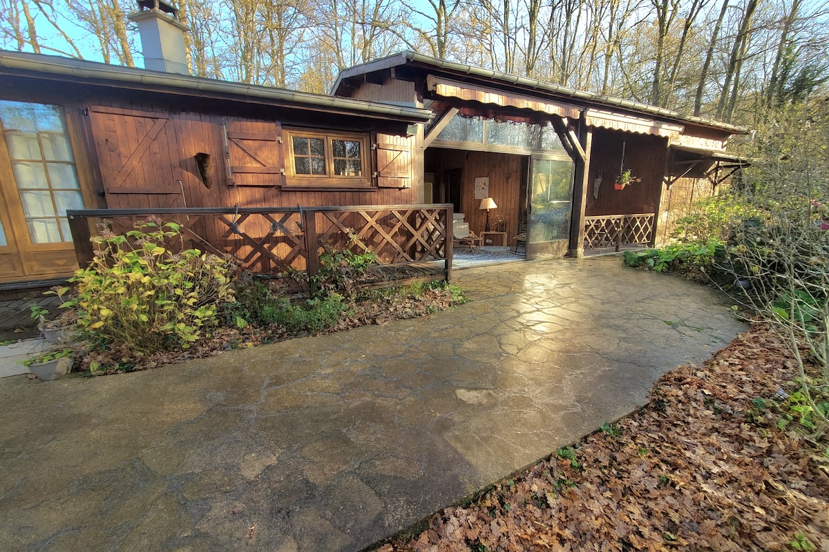 [Coin idyllique aux portes de Paris] Ce petit chalet en bord de lac date de 1984, il a été redecoré mais a besoin d'être rénové, c'est pourquoi je le mets en location afin de récolter des fonds pour les travaux. Tout est fonctionnel, il y a juste l'étage qui n'est pas accessible. Chalet situé dans une résidence privée avec un grand lac idéal pour se baigner et pêcher. Accès direct au lac depuis le jardin. Chalet équipé du wifi très bon débit
