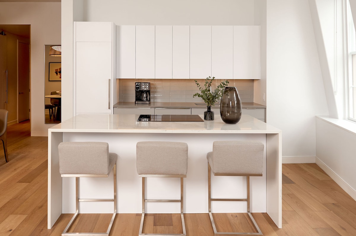 Immerse yourself in the culture of the Old Port at your luxury loft. A top choice for travelers, The Docent's Collection was most recently awarded Condé Nast Readers' Choice (2025) and Tripadvisor Travelers' Choice (2025). Enjoy this spacious open-concept floor plan featuring a full-sized kitchen and bedrooms with soft luxurious linens and cozy pillows for your comfort. Admire the tapestry of a curated collection of local artists and enjoy five-star service from our local hospitality team.