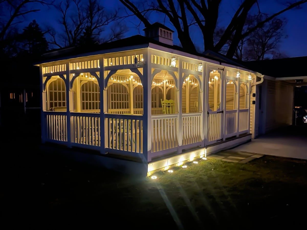 Newly renovated home features all of the modern amenities families enjoy. A large island for entertaining, a dining table seating 8, large living room, a bright sunroom with plenty of seating, as well as a sun porch with a bistro table & chairs, outdoor seating, & 3 spacious bedrooms upstairs each has a queen size bed. The home is a minute's walk from our popular home decor boutique, Gray Apple Market. A 10 minute drive to downtown York & other popular destinations such as the York Fairgrounds.