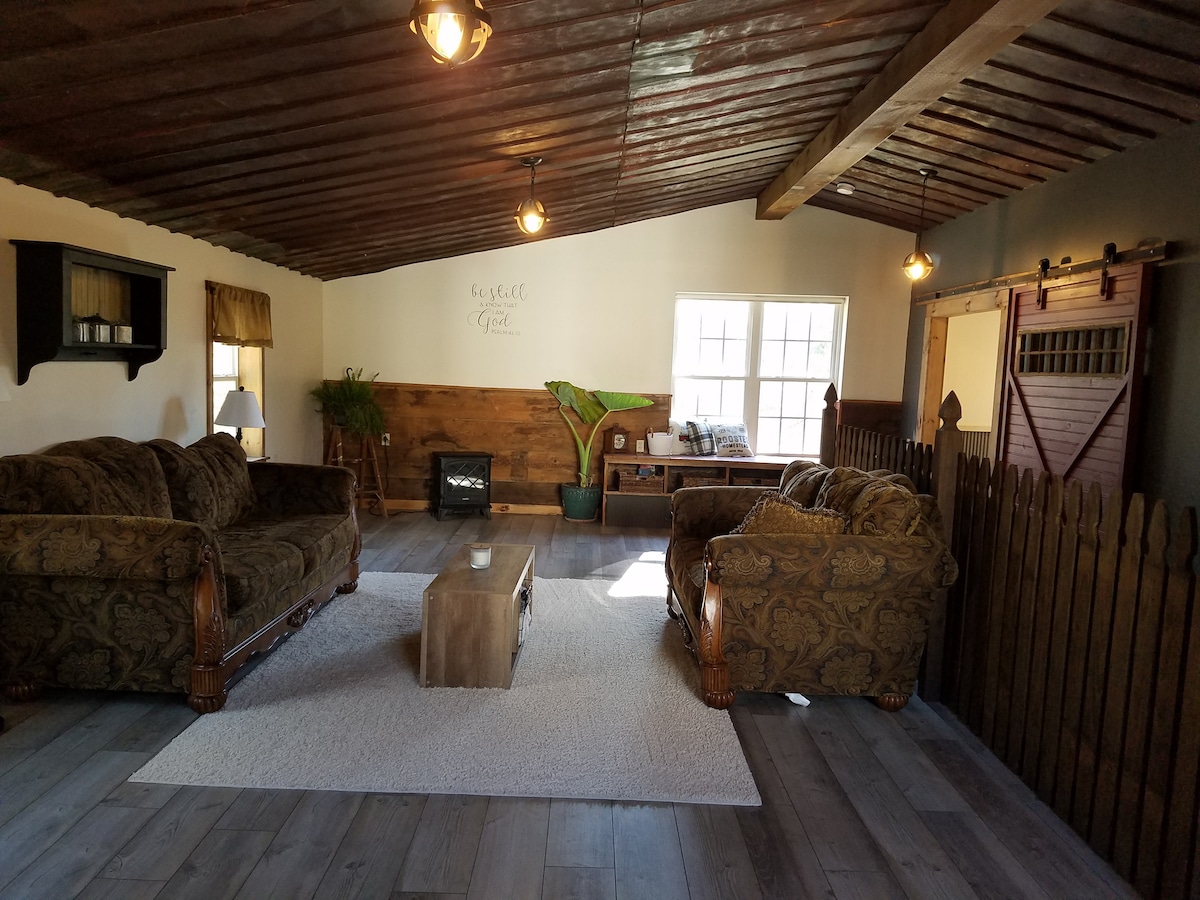 This unique second floor space is perfect for a weekend getaway for two in picturesque Lancaster County. Located about 10 min from Downtown Lancaster, Spooky Nook Sports, Columbia antique warehouses, F&M, MU & 20 minutes from outlet shopping & many Lanc Co tourist hotspots, make travel to planned destinations easy and quick. If laying low for your stay, you'll find indoor & outdoor fireplaces available for a quiet evening of enjoyment.