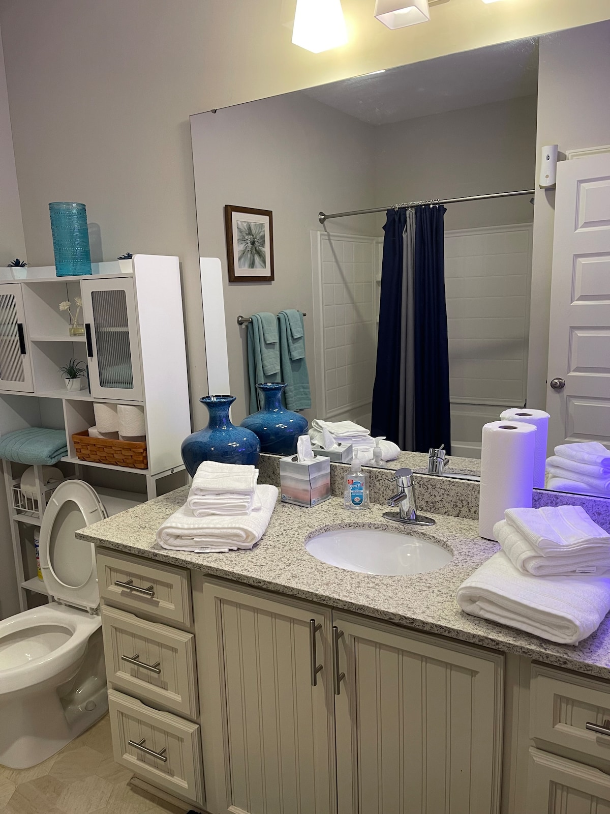 Experience luxury in our stylish 1BR apartment, conveniently located near local attractions, restaurants, and transportation. Enjoy a fully equipped kitchen with quartz countertops & high-end appliances, in-unit laundry, and spacious closets. Complimentary parking and high-speed WIFI provided. Relax in the resort-inspired salt-water pool, grilling area & fire pit, fitness center, and dog park. Accessible ground-floor unit with private walk-up patio. Ideal for a comfortable and convenient stay.