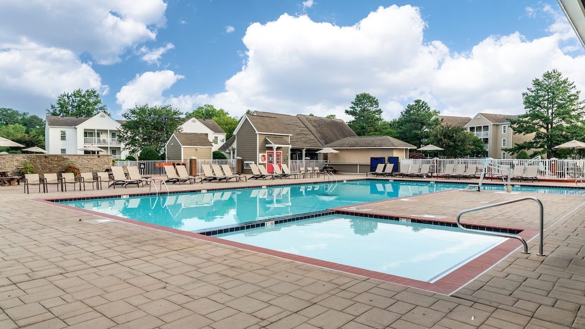Welcome to our charming 2BR/2BA condo close to Williamsburg! Located just minutes from historic Williamsburg, you can explore the area or stay on property and relax by the pool and enjoy the many family friendly amenities on site. Experience all that Williamsburg has to offer from historic landmarks along one of Williamsburg's many walking and biking trails like Powhatan Creek Trail, Historic Jamestown Bike Trail, and Freedom Park, historic downtown Williamsburg, and Busch Gardens.